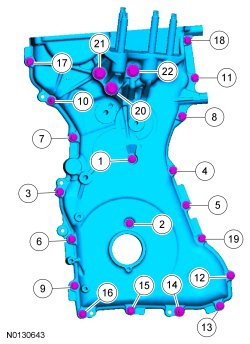 Install the engine front cover, the 20 bolts and 2 stud bolts.