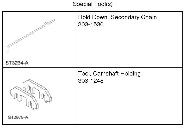 NOTICE: The following steps are only for the replacement of the secondary timing chain tensioners. Do not reuse the secondary timing chain tensioners if removed or damage to the engine may occur.