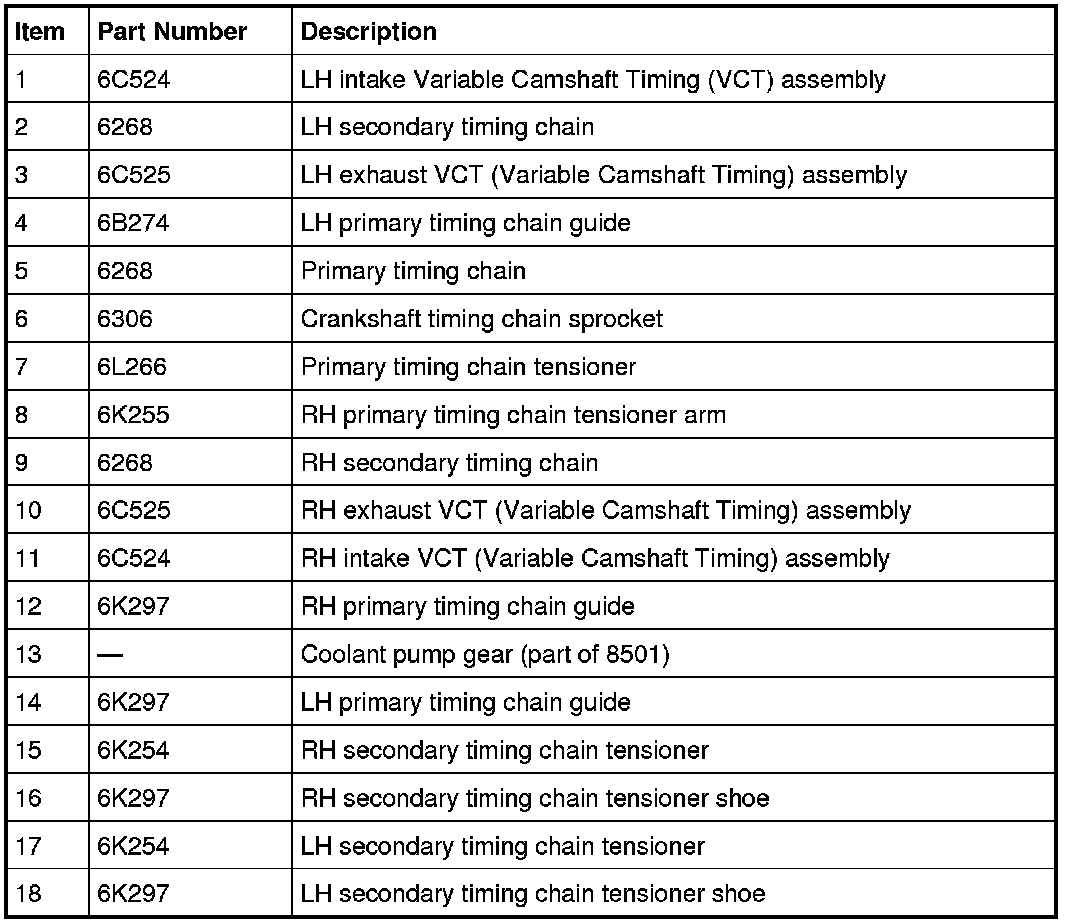 14. NOTE: Removal of the VCT (Variable Camshaft Timing) oil control solenoid will aid in the removal of the primary timing chain.