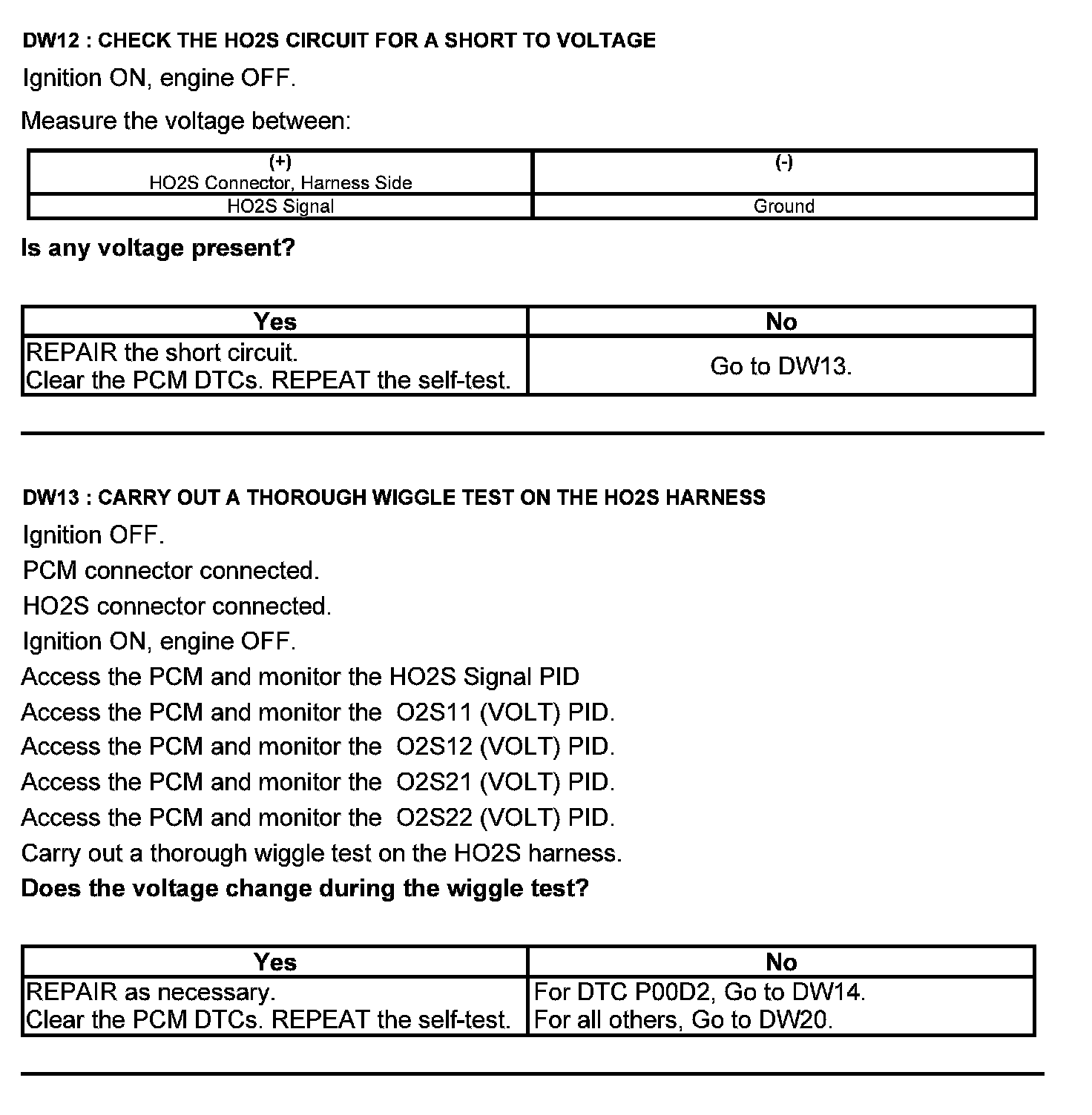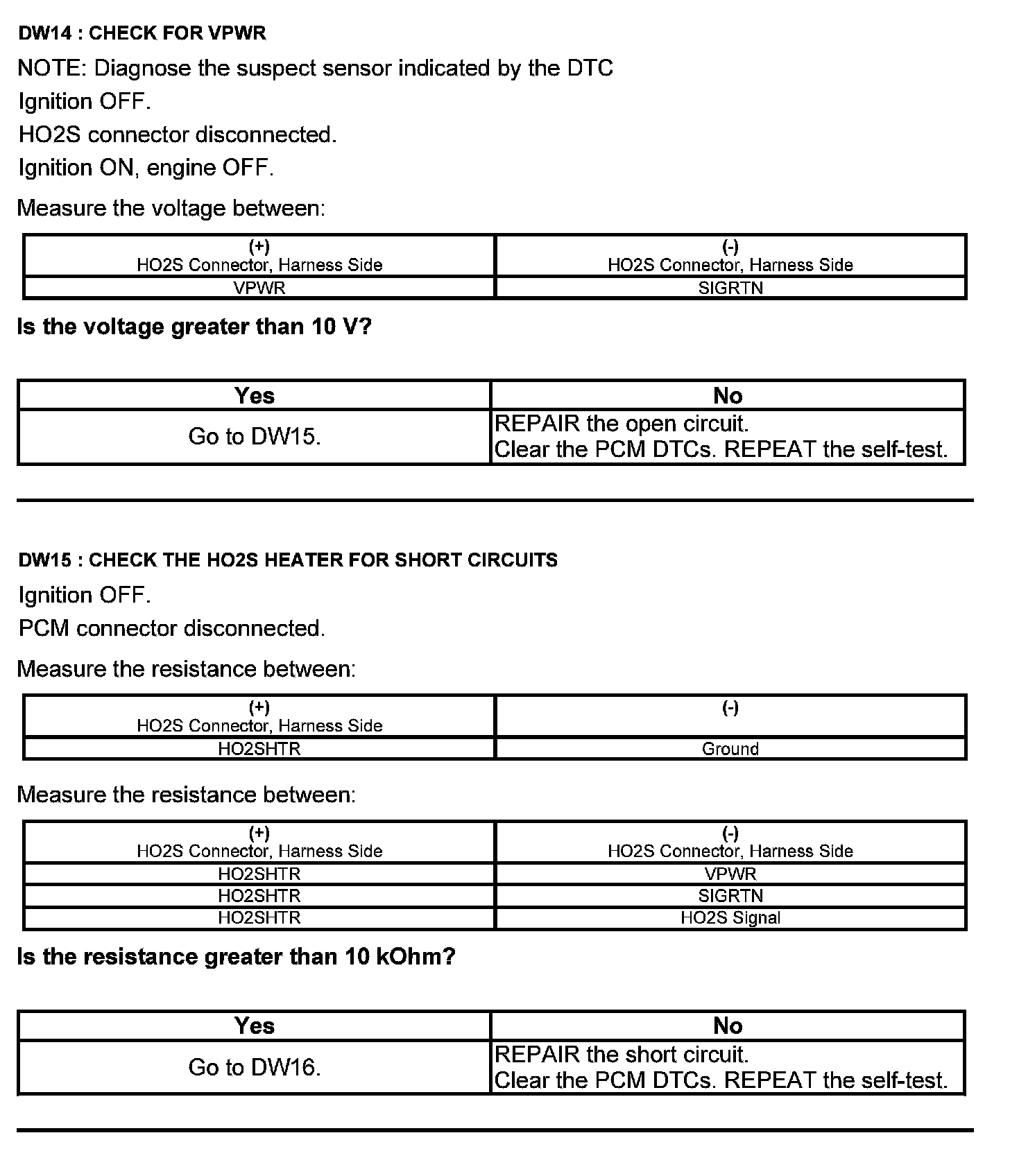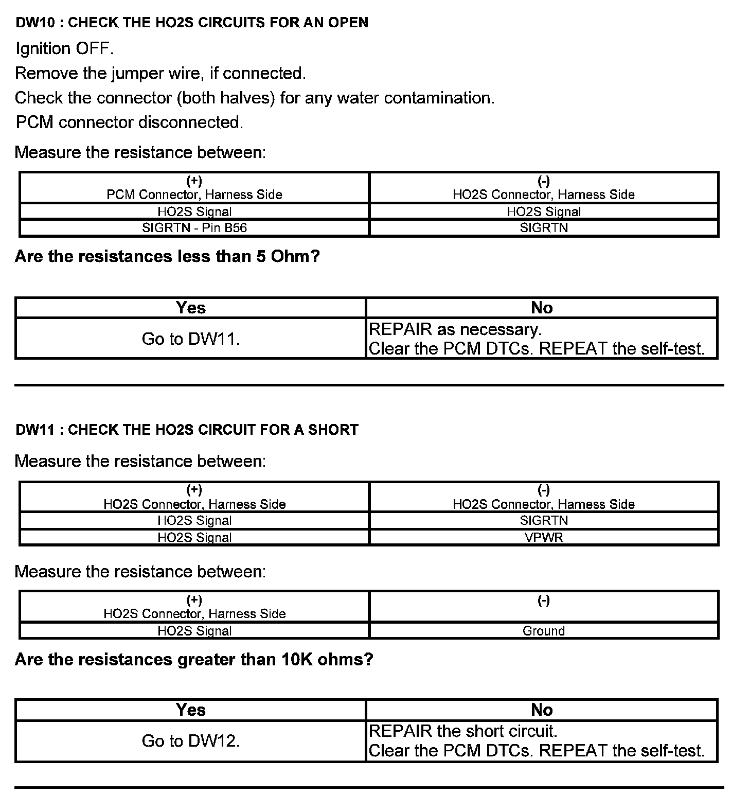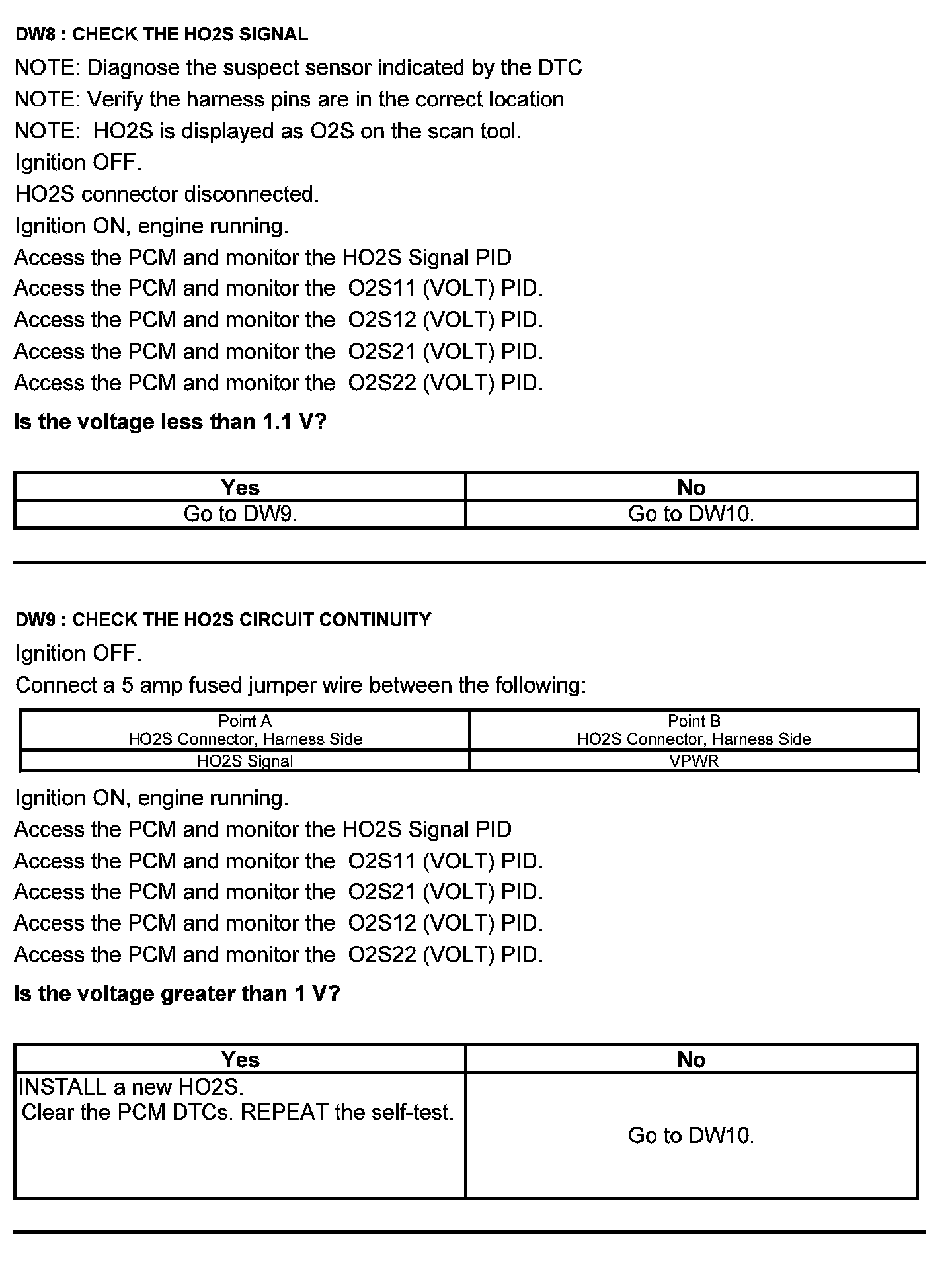 Home >> Ford >> 2012 >> Edge FWD V6-3.5L >> Repair and Diagnosis >> Powertrain Management >> Computers and Control Systems >> Testing and Inspection >> Pinpoint Tests >> Test DW: Heated Oxygen Sensor (HO2S)