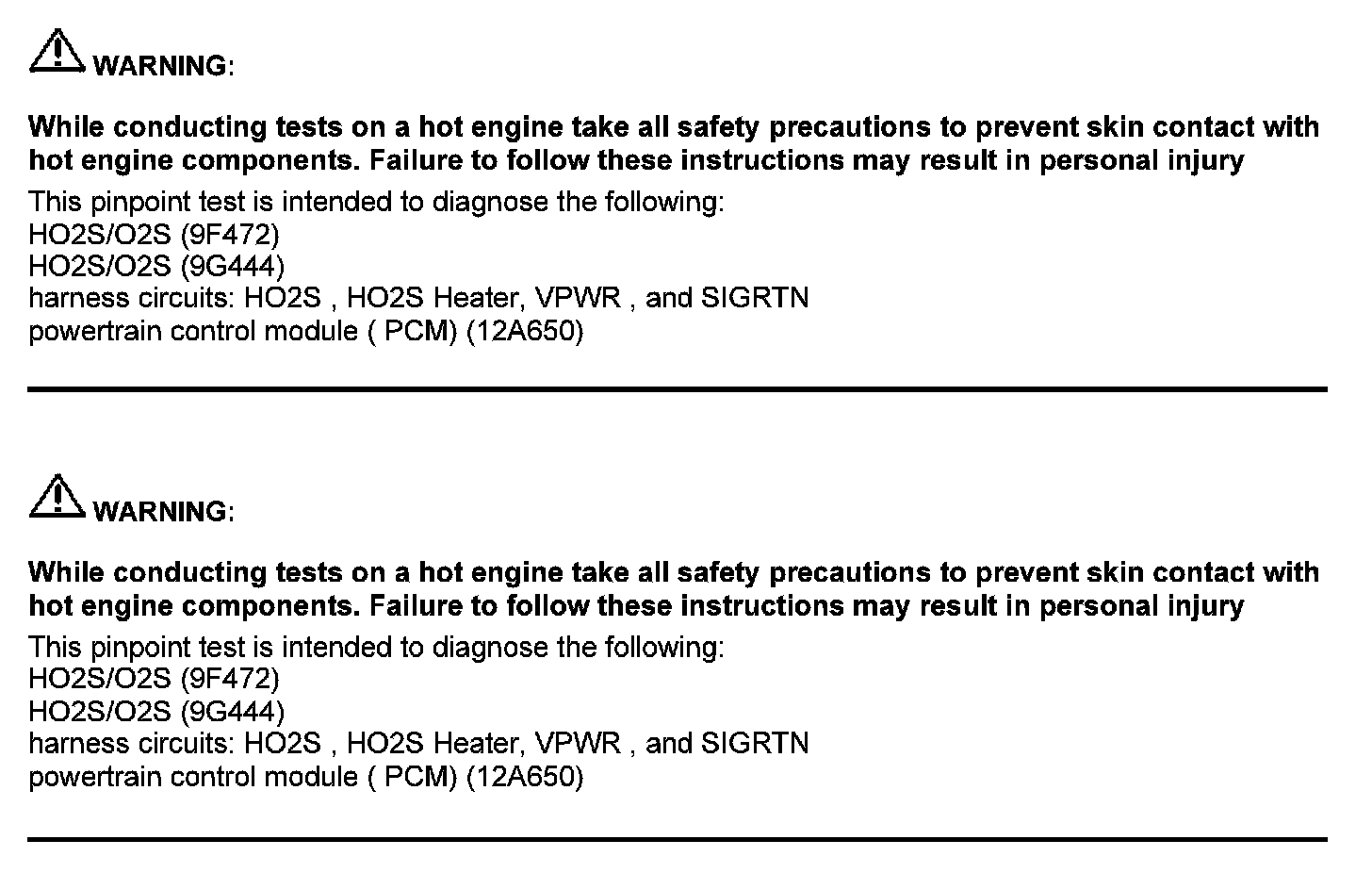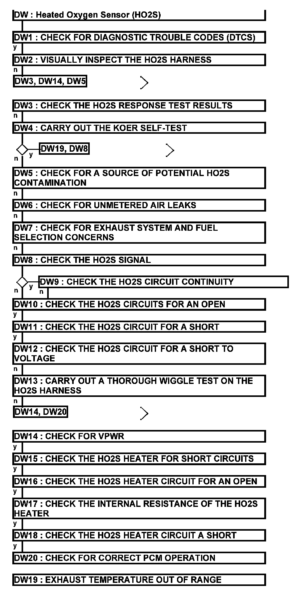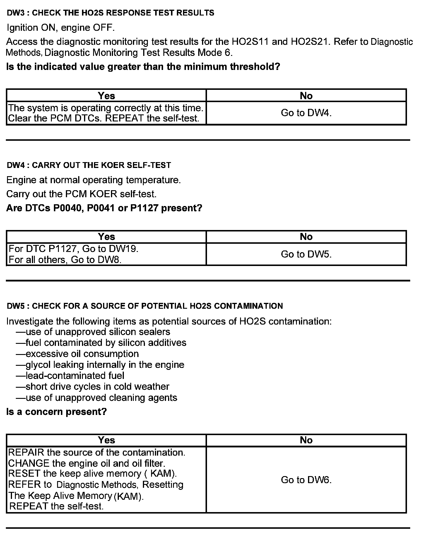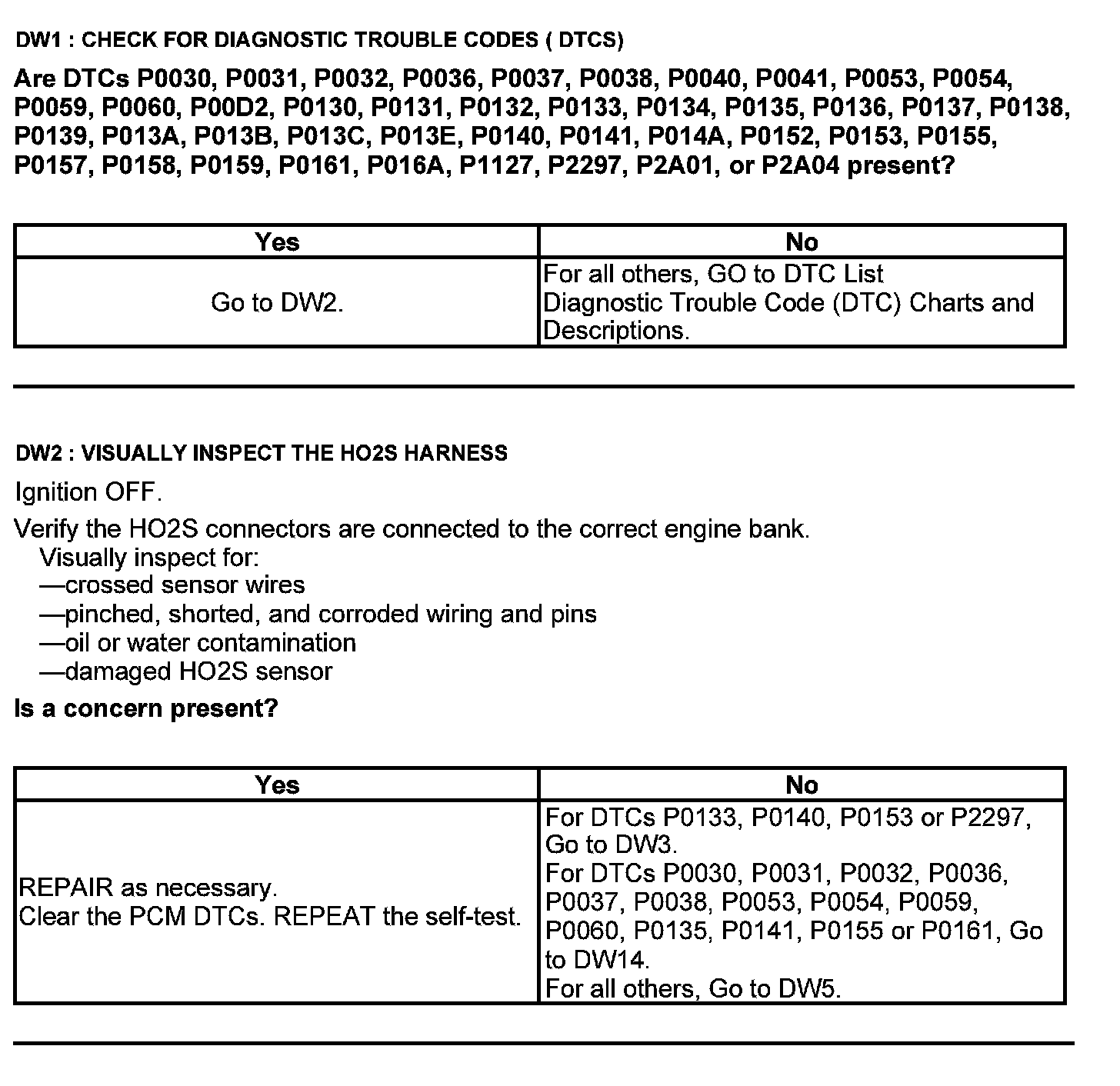 Home >> Ford >> 2012 >> Edge FWD V6-3.5L >> Repair and Diagnosis >> Powertrain Management >> Computers and Control Systems >> Testing and Inspection >> Pinpoint Tests >> Test DW: Heated Oxygen Sensor (HO2S)