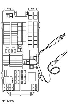 NOTICE: The following step uses a test light to simulate normal circuit loads. Use only the test light recommended in the Special Tools table at the beginning. To avoid connector terminal damage, use the Flex Probe Kit for the test light probe connection to the vehicle. Do not use the test light probe directly on any connector.
