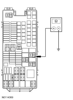 - Measure the resistance between rear window defrost relay pin 1, circuit CH122 (WH/OG) and ground.