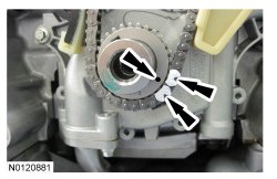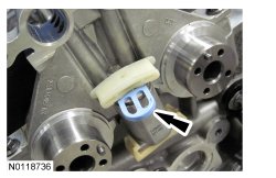 13. NOTE: Removal of the VCT (Variable Camshaft Timing) oil control solenoid will aid in the removal of the primary timing chain.