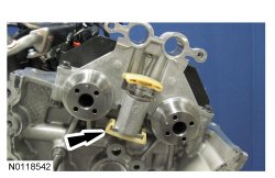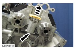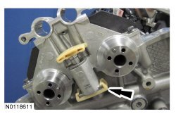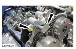 14. NOTE: Removal of the VCT (Variable Camshaft Timing) oil control solenoid will aid in the removal of the primary timing chain.