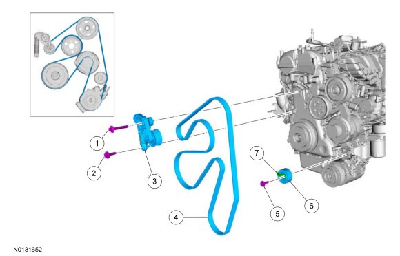 NOTE: The accessory drive belt is routed behind the accessory drive belt tensioner. It is necessary to remove the accessory drive belt tensioner to remove the accessory drive belt.