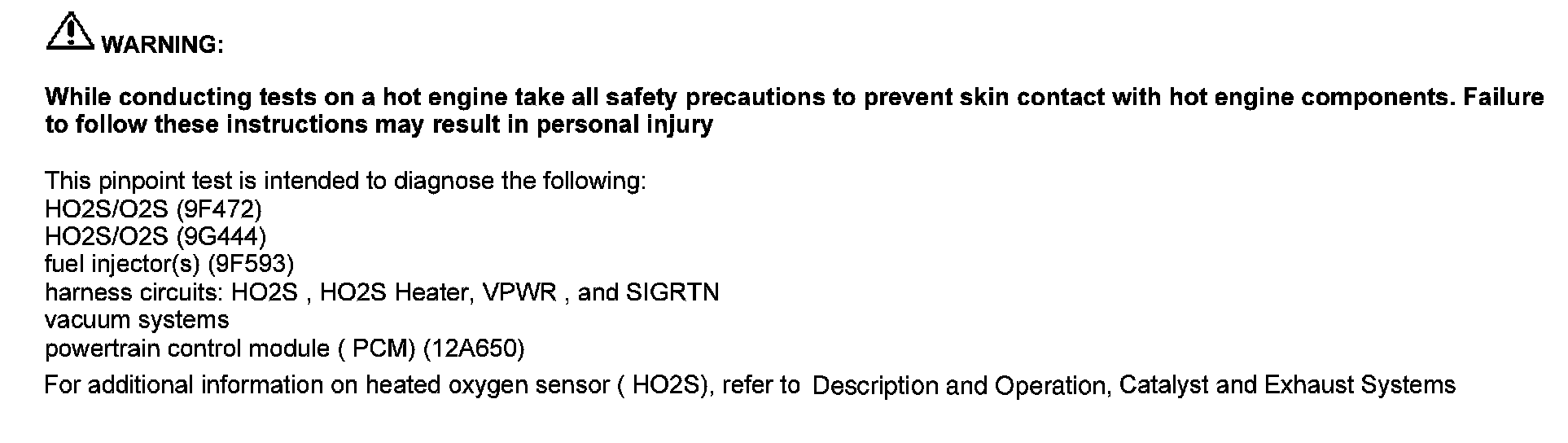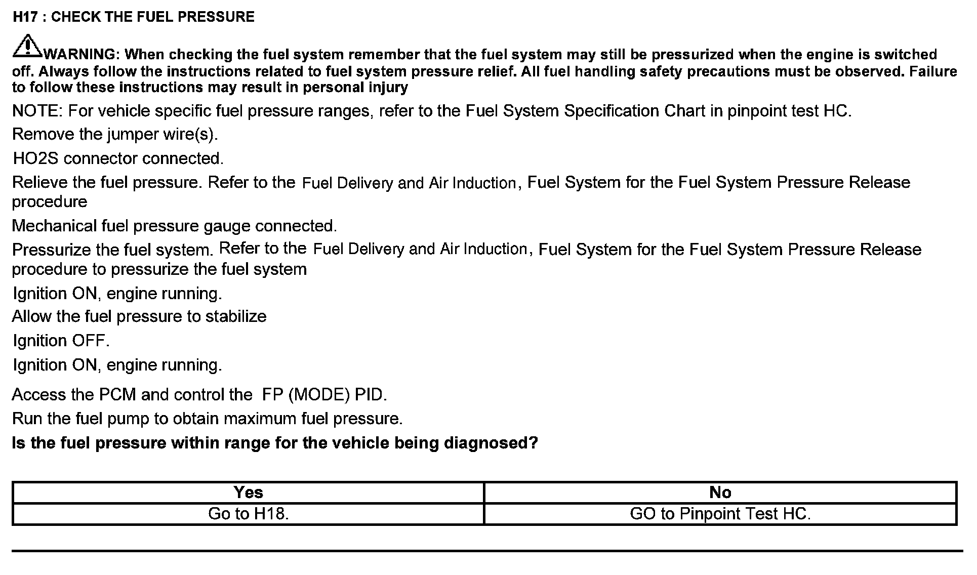 Home >> Ford >> 2012 >> Edge FWD V6-3.7L >> Repair and Diagnosis >> Powertrain Management >> Computers and Control Systems >> Testing and Inspection >> Pinpoint Tests >> Test H: Fuel Control