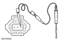 NOTICE: The following step uses a test light to simulate normal circuit loads. Use only the test light recommended in the Special Tools table at the beginning. To avoid connector terminal damage, use the Flex Probe Kit for the test light probe connection to the vehicle. Do not use the test light probe directly on any connector.