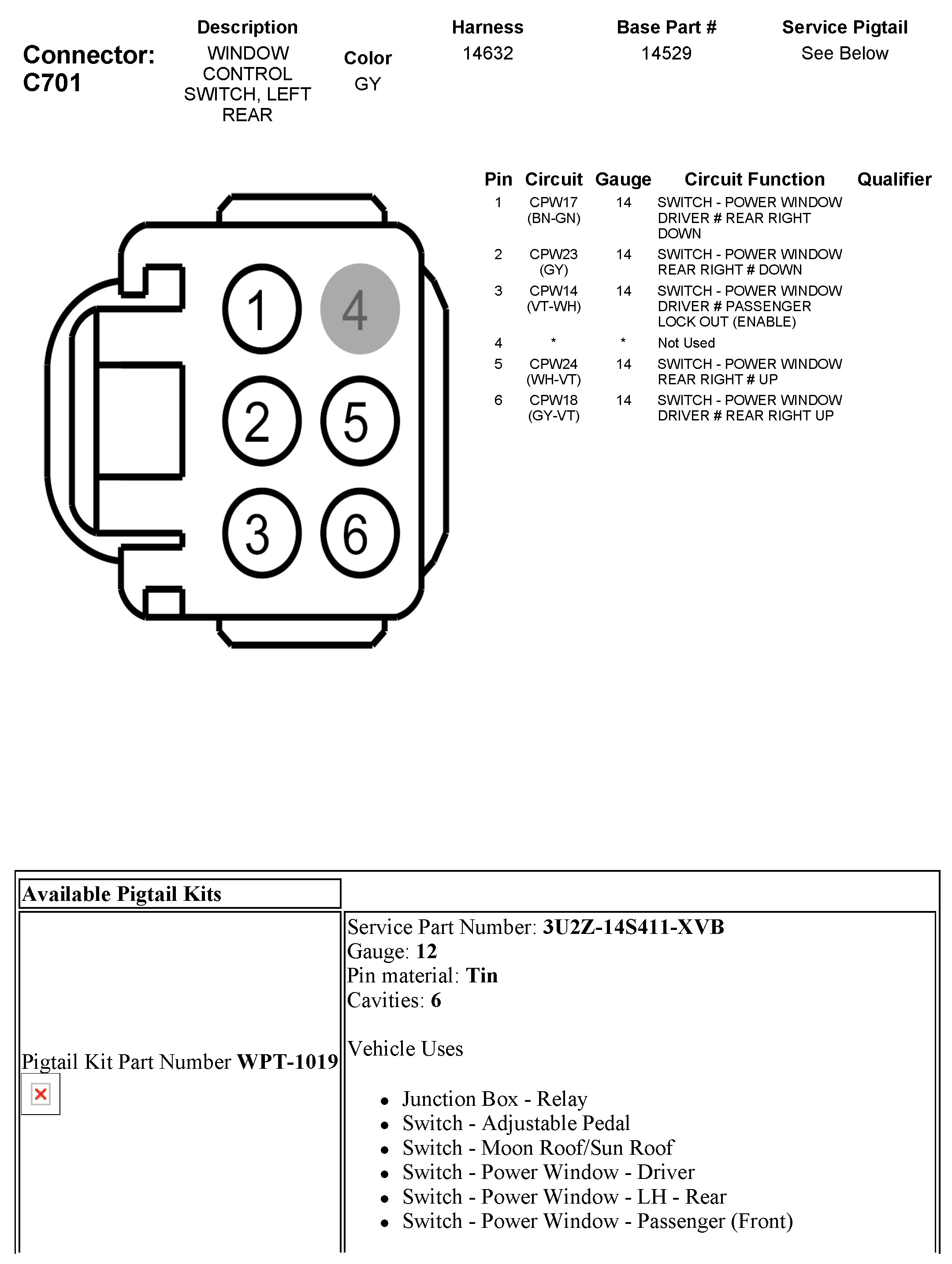 C701 Window Control Switch, Left Rear