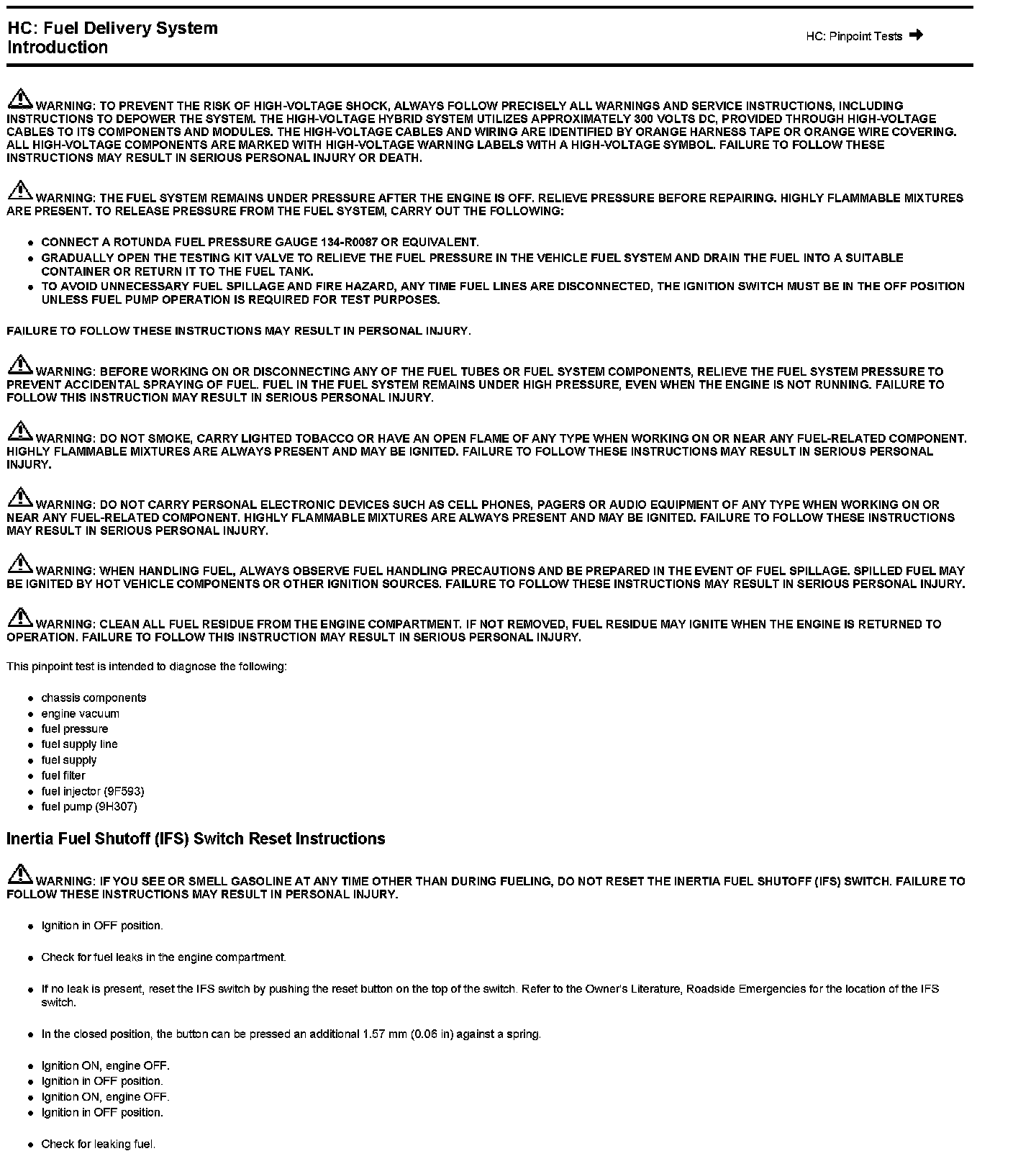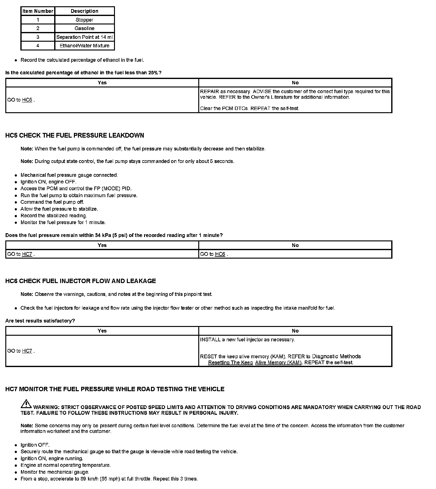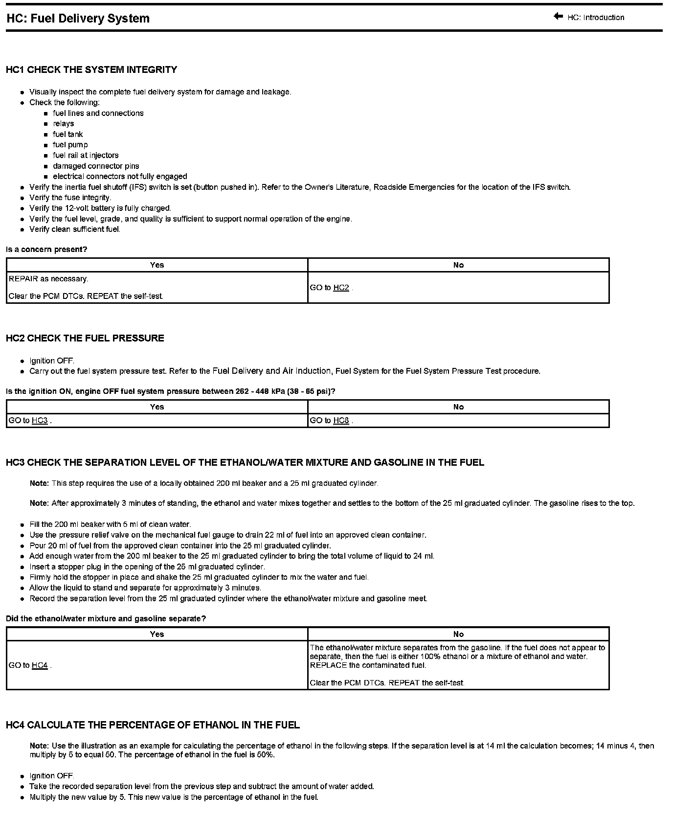 Test HC: Fuel Delivery System