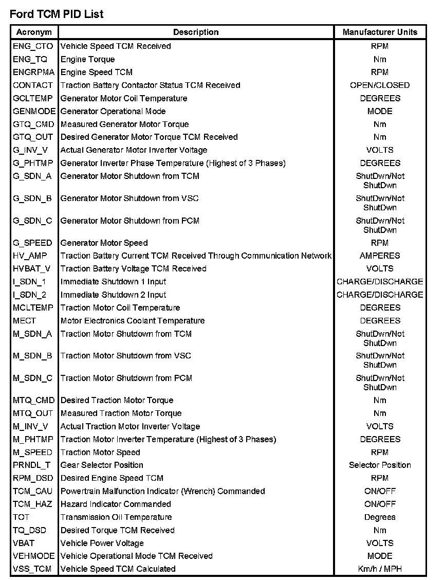 Note: This is not a complete list of Ford PIDs available. This is a list of Ford PIDs.