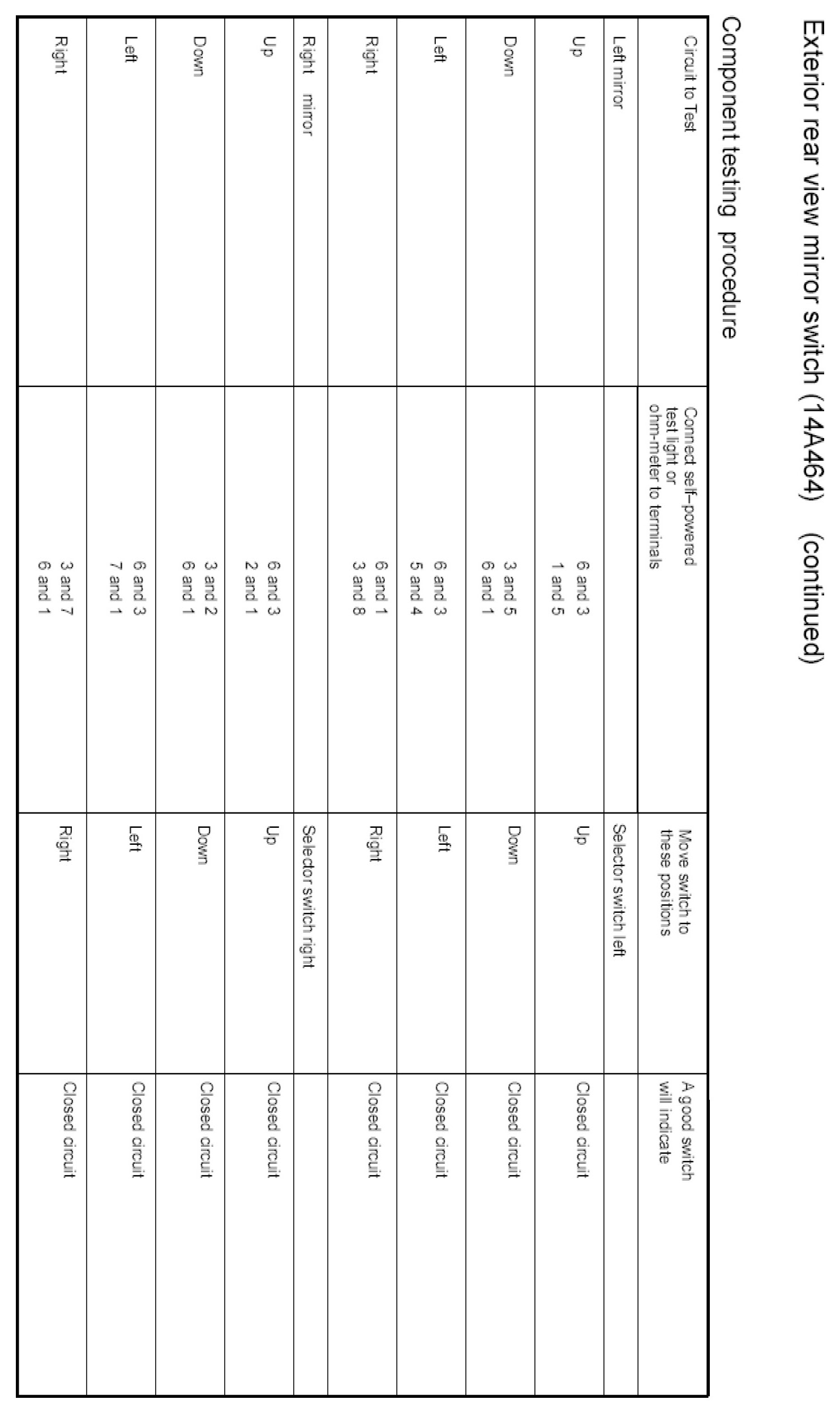 Power Mirror Switch: Testing and Inspection