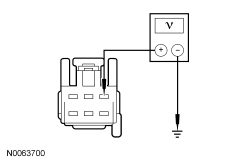 While operating the exterior mirror control switch in the leftward position, measure the voltage between ground and inoperative exterior mirror: