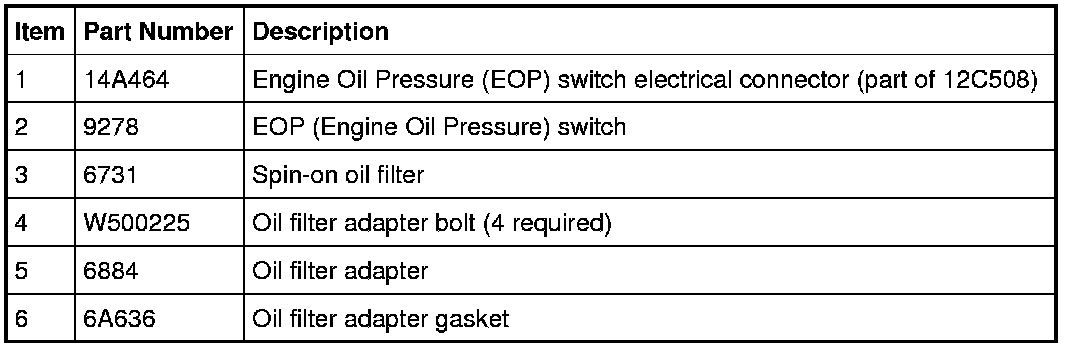 Oil Filter Adapter, Spin-on Oil Filter and Engine Oil Pressure (EOP) Switch