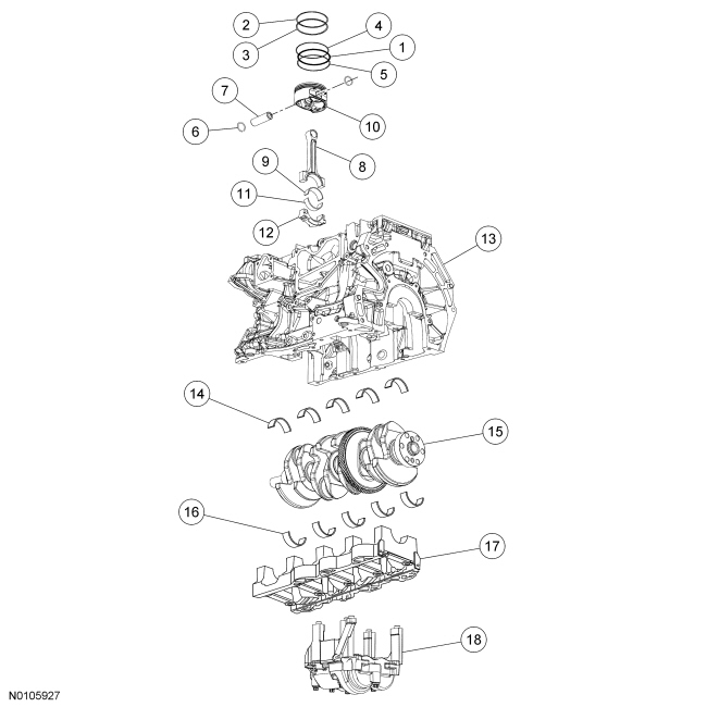 NOTICE: During engine repair procedures, cleanliness is extremely important. All parts must be thoroughly cleaned and any foreign material, including any material created while cleaning gasket surfaces, that enters the oil passages, coolant passages or the oil pan, can cause engine failure.