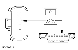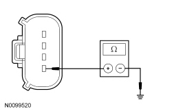 - Measure the resistance between the ACCM (Air Conditioning Compressor Module) C1469A-4, circuit GD123 (BK/GY), harness side and ground.