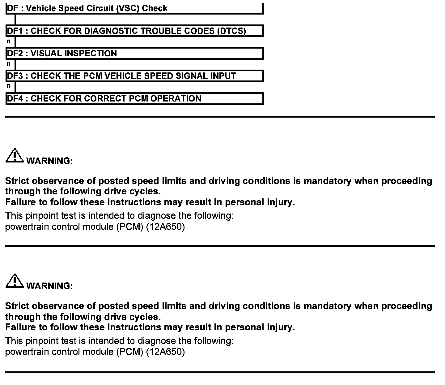 Test DF: Vehicle Speed Circuit (VSC) Check