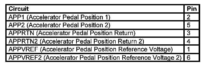 Accelerator Pedal Position (APP) Sensor Connector