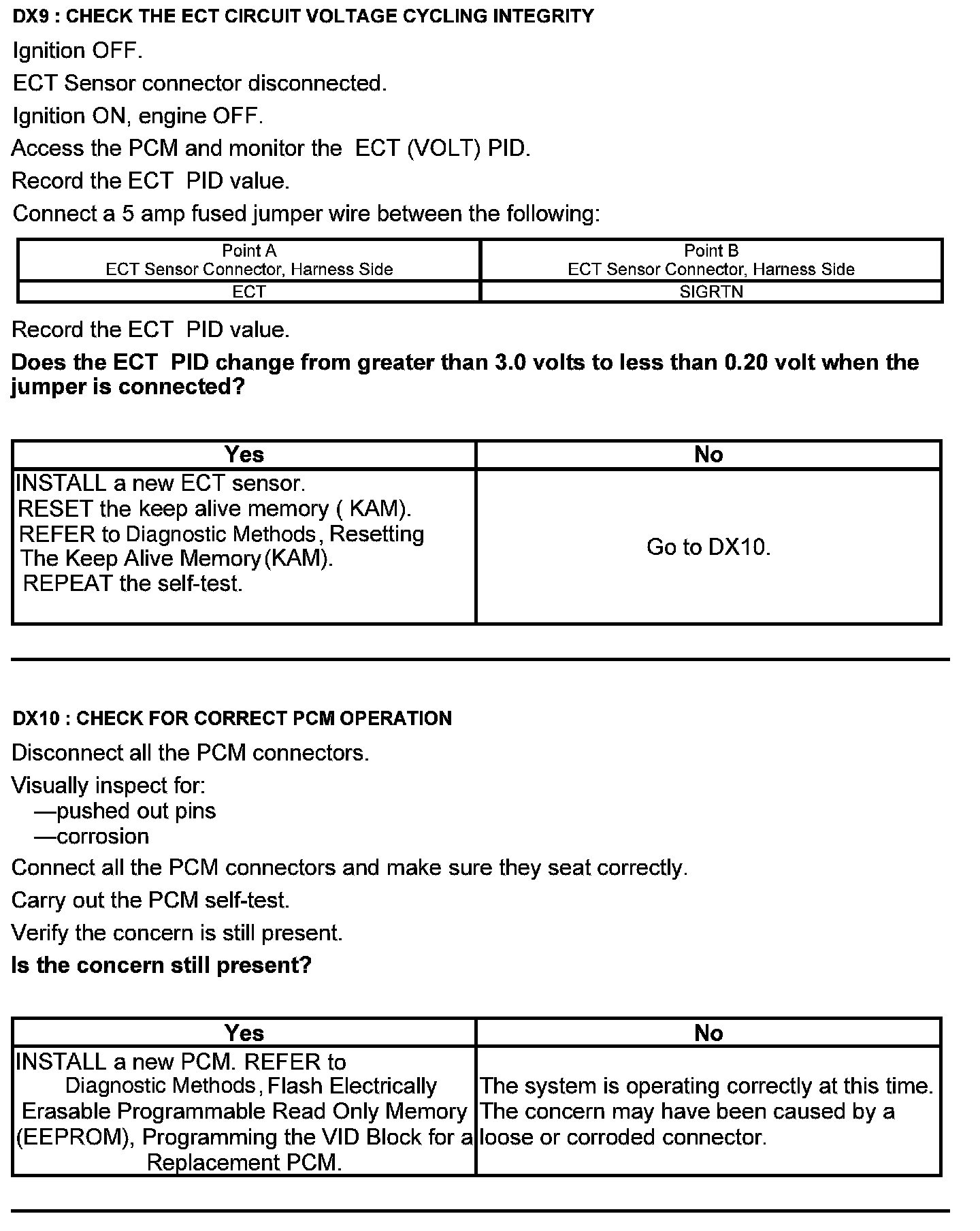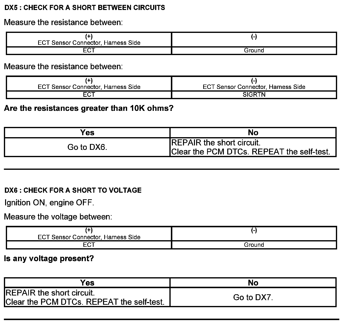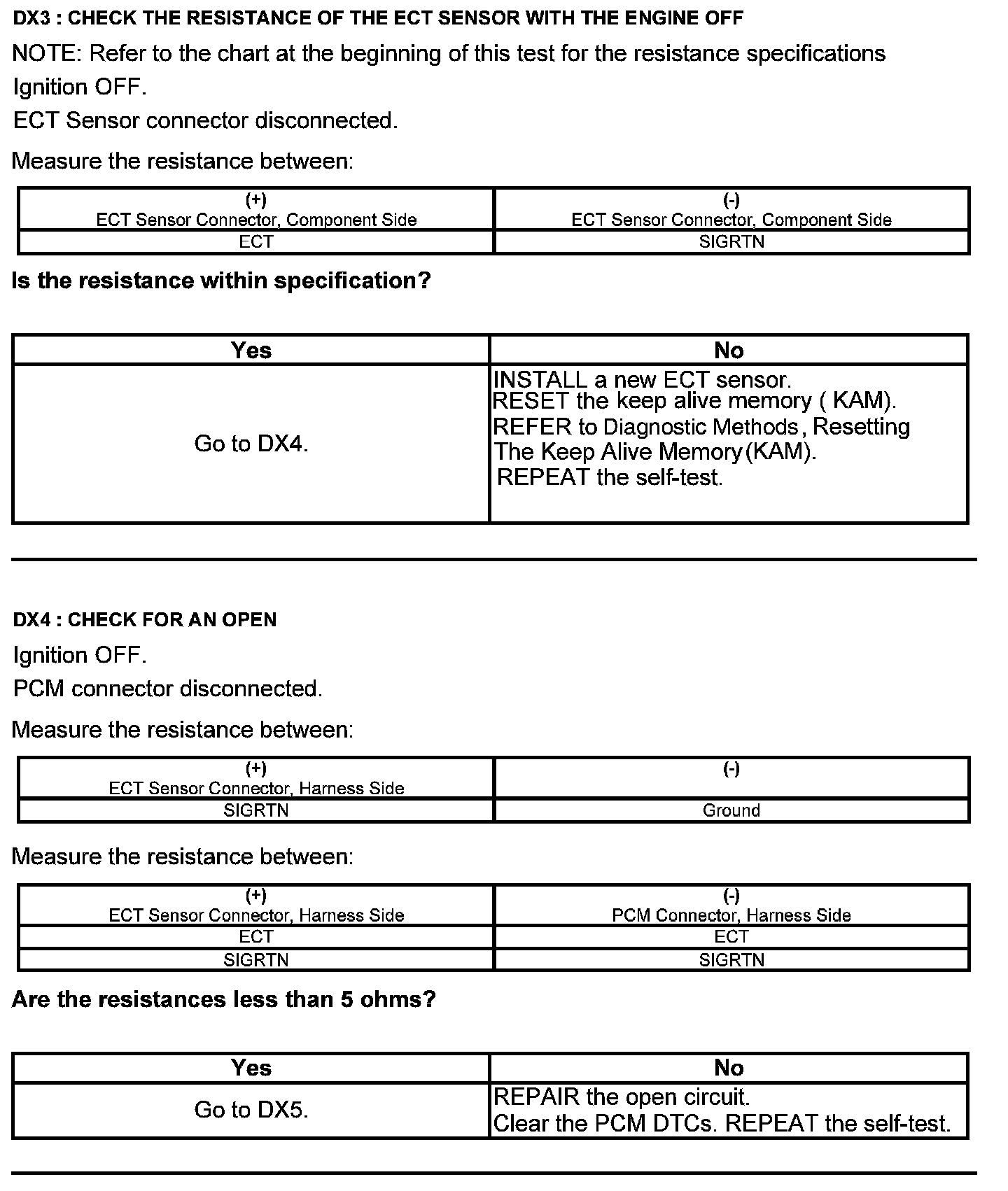 Test DX: Engine Coolant Temperature (ECT) Sensor
