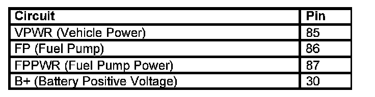 Fuel Pump (FP) Relay Connector - The VPWR and FP circuits may be reversed in the harness connector. Refer to the Wiring Diagrams for schematic and connector information.