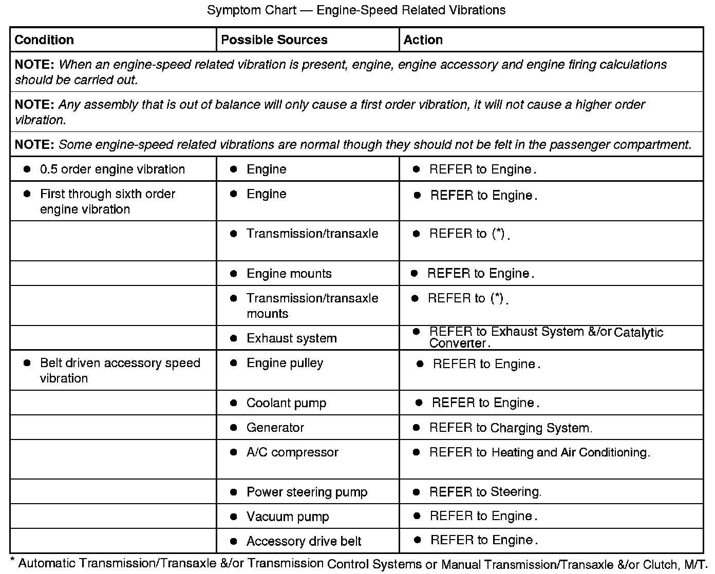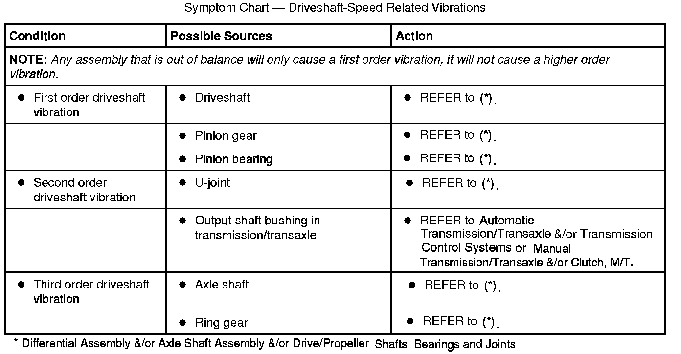 Symptom Chart - Driveshaft-Speed Related Vibrations