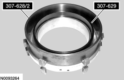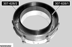 8. Turn the center support over and install the Low Reverse Piston Seal Protector 307-628/1 and 307-628/2 on the low/reverse piston side of the center support.