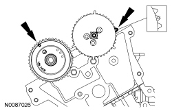 - Align the marks on the timing chain with the marks on the camshaft and crankshaft sprockets.