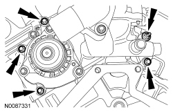81. Install the 5 coolant pump housing bolts.