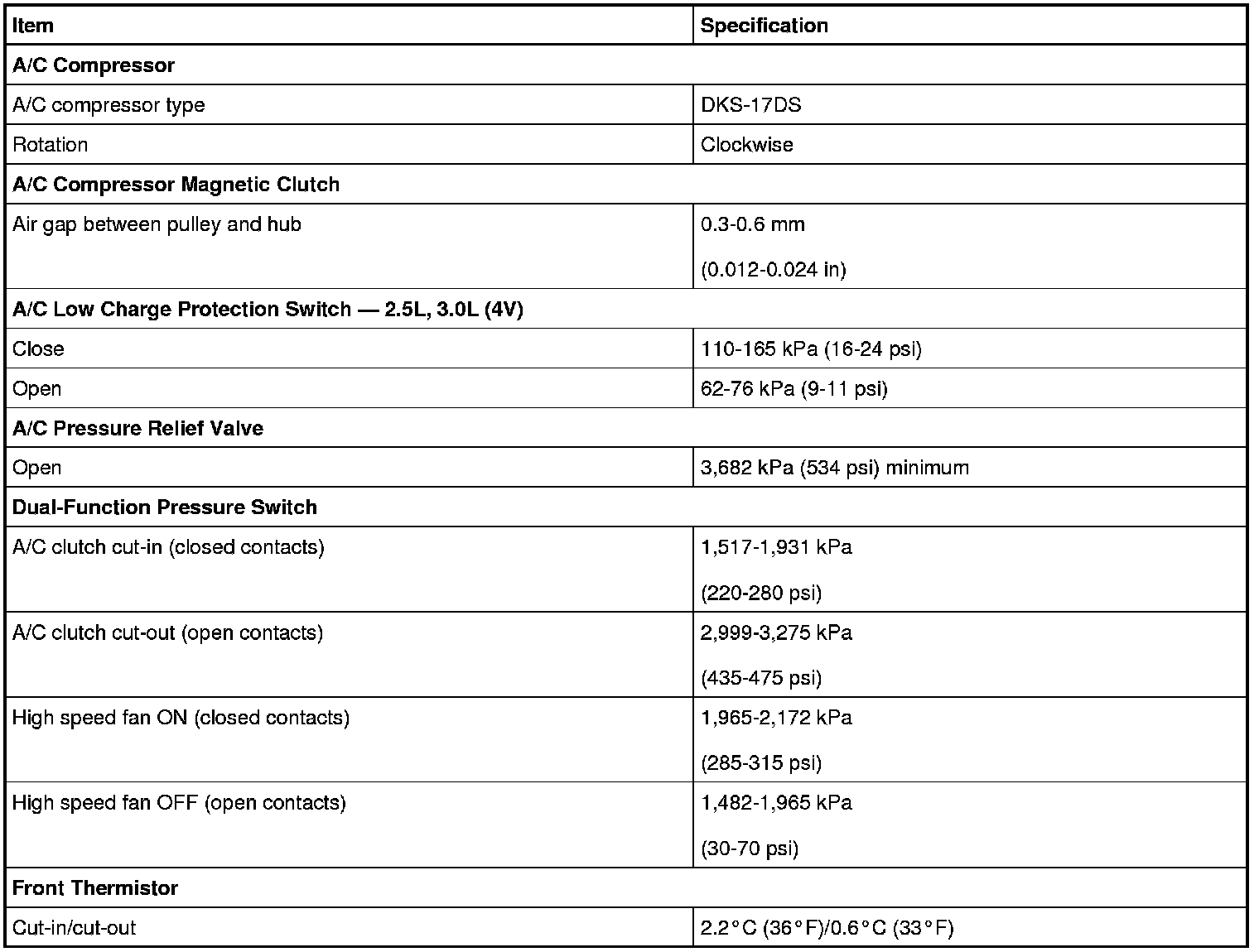 The General Specifications apply to non-hybrid vehicles only.