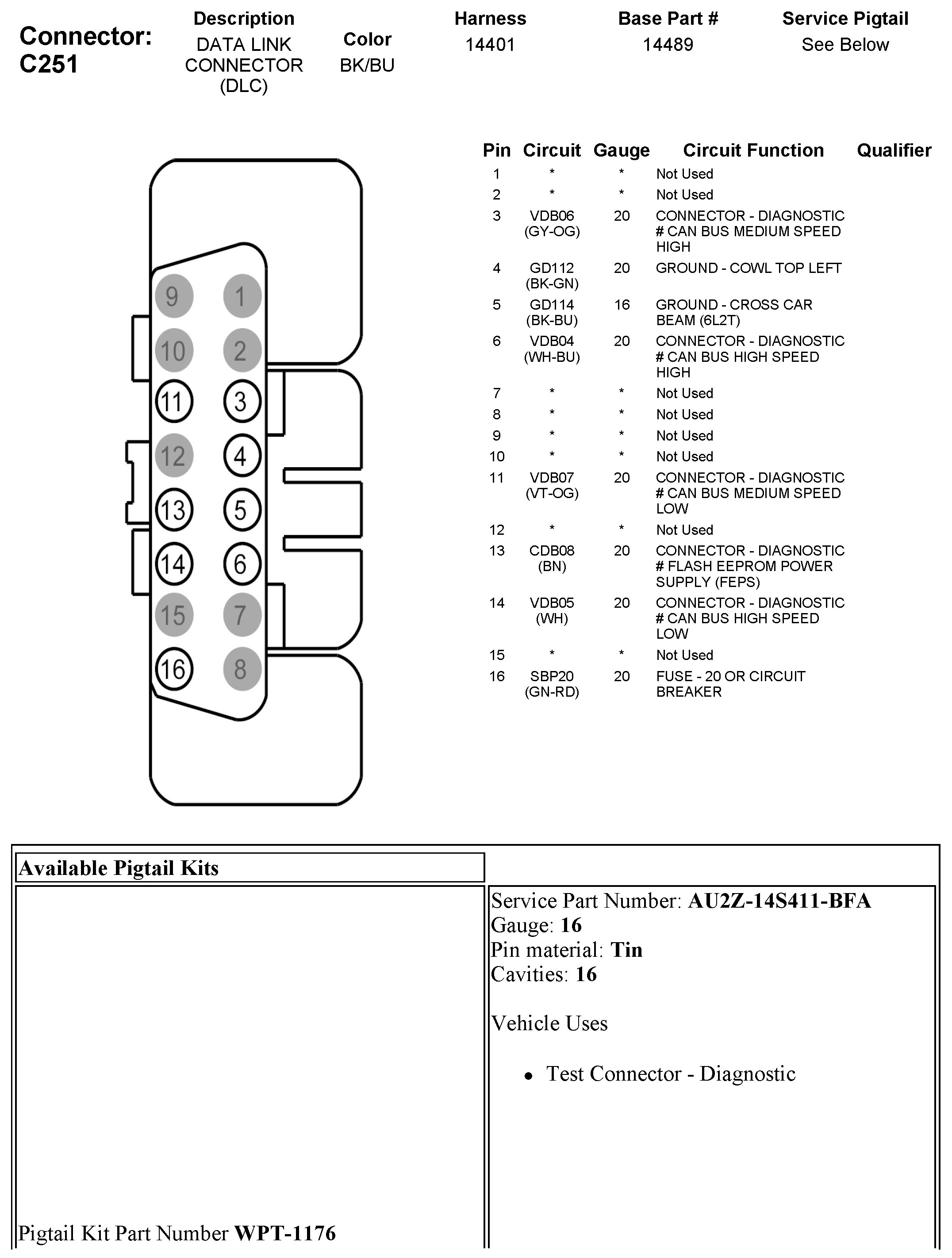 Data Link Connector: Diagrams