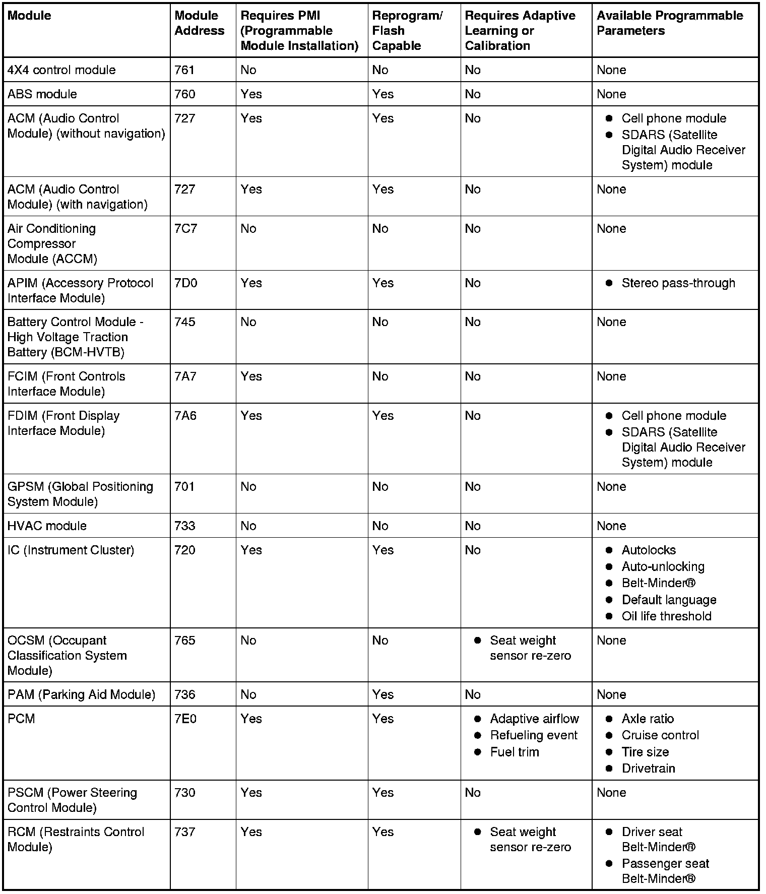 Programmable parameters are customer preference items that may be modified by the dealer via scan tool or in some cases modified by the customer following a procedure listed in the vehicle Owner's Literature. While many configuration options may exist for a module, only a few of these options are programmable parameters.
