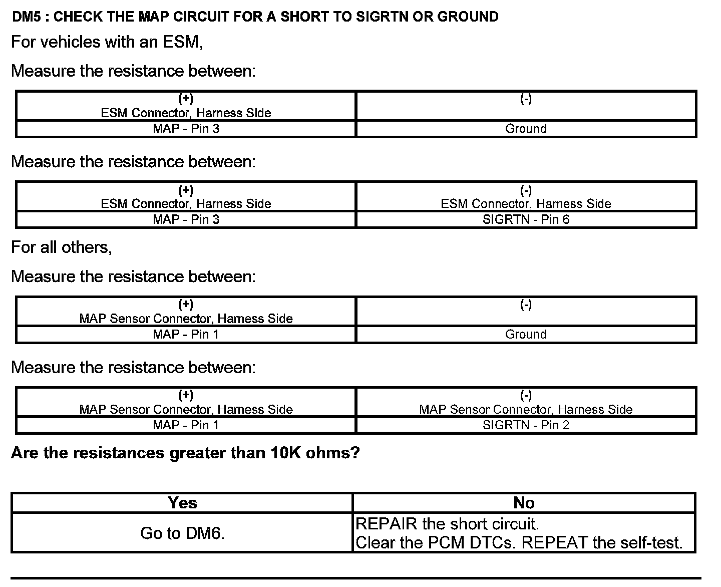 Test DM: Manifold Absolute Pressure (MAP) Sensor