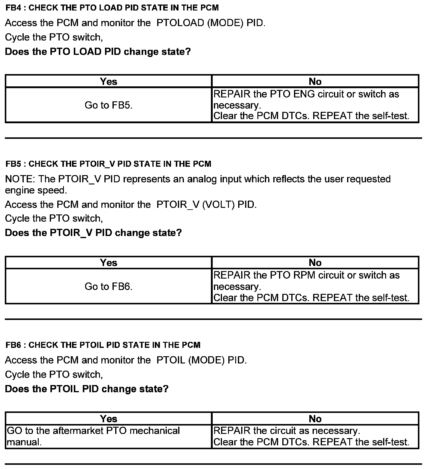 Test FB: Power Take Off (PTO)