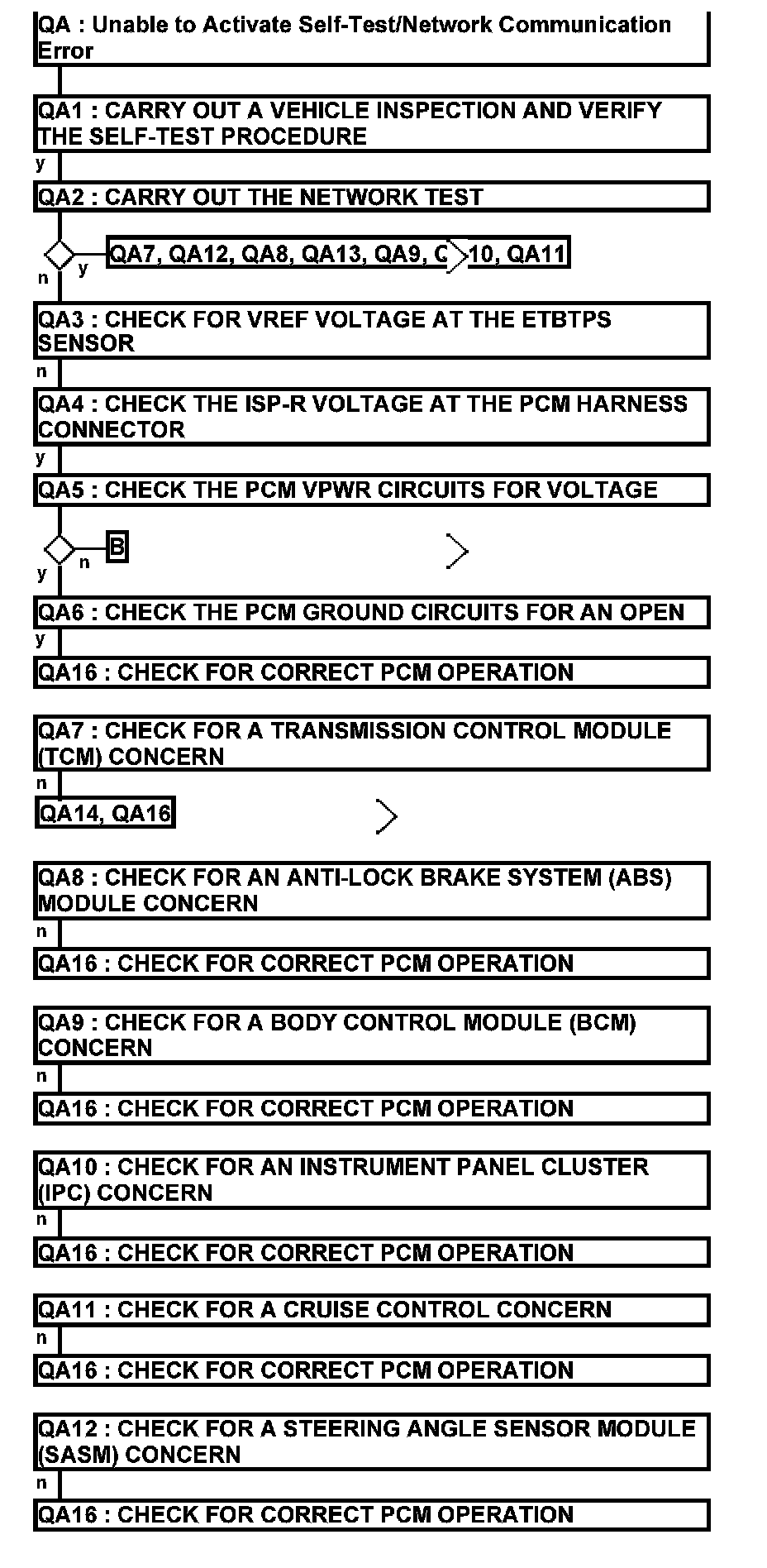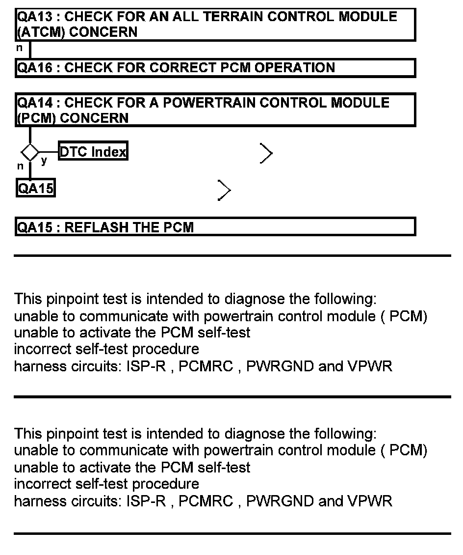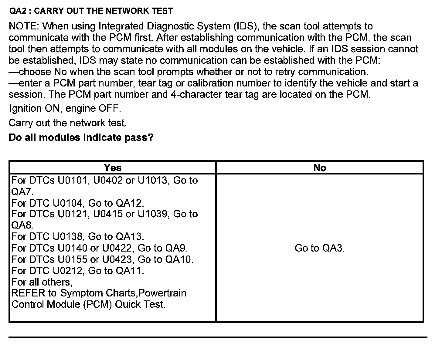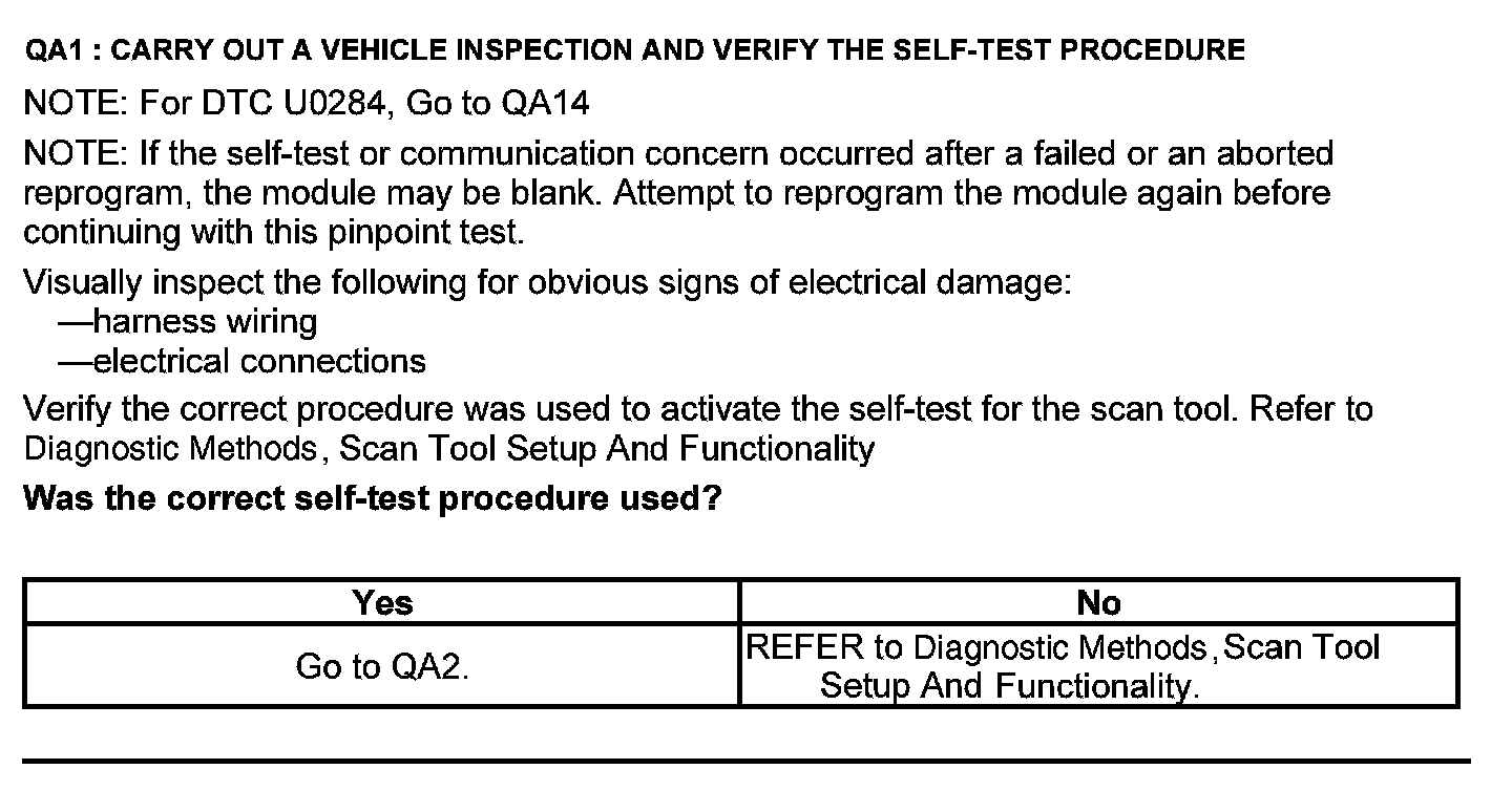 Home >> Ford >> 2012 >> Escape 2WD V6-3.0L >> Repair and Diagnosis >> Powertrain Management >> Computers and Control Systems >> Testing and Inspection >> Pinpoint Tests >> Test QA: Unable to Activate Self-Test/Network Communication Error