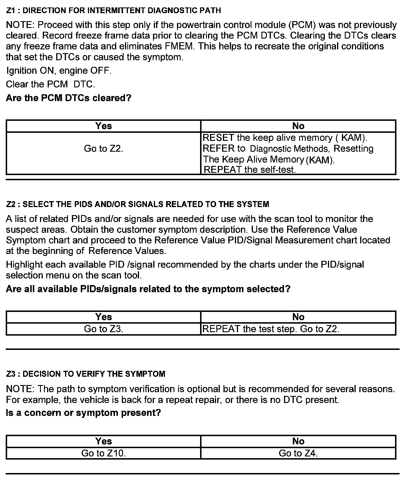 Test Z: Intermittent