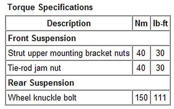 Torque Specifications
