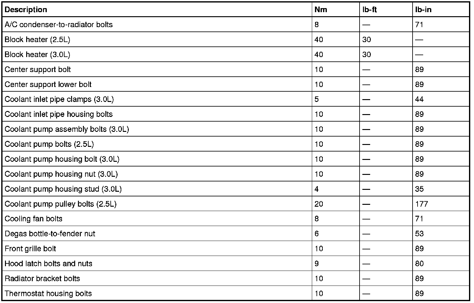Torque Specifications