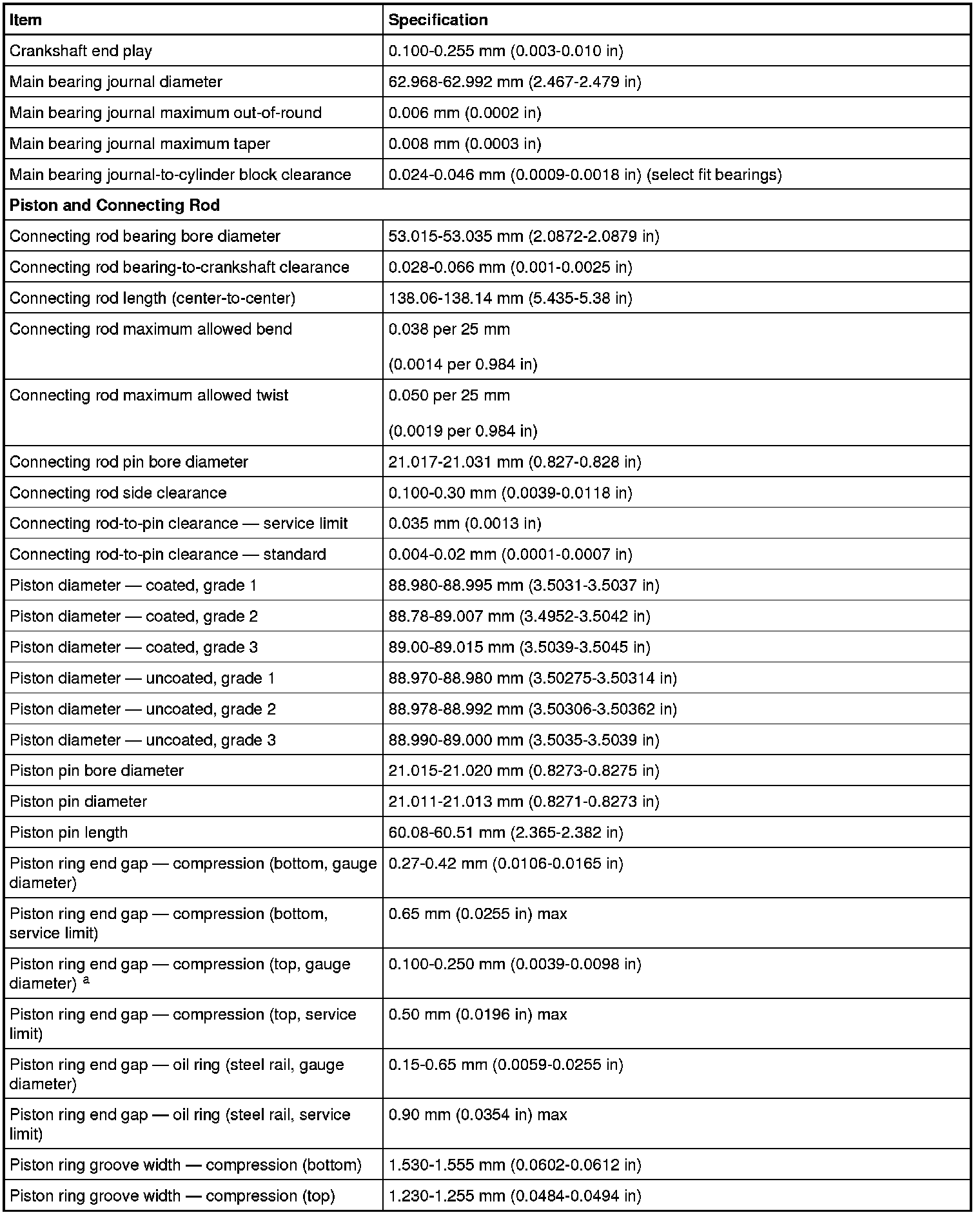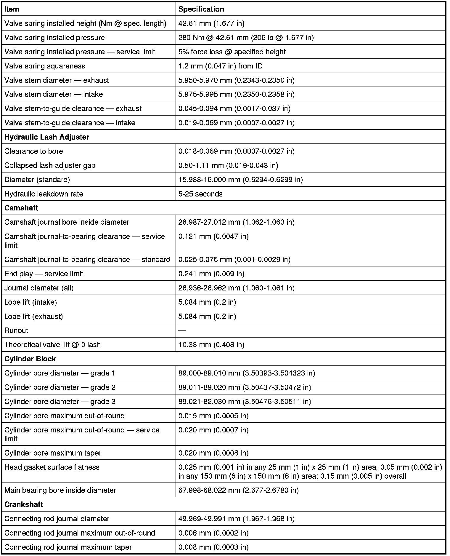 Engine Specifications