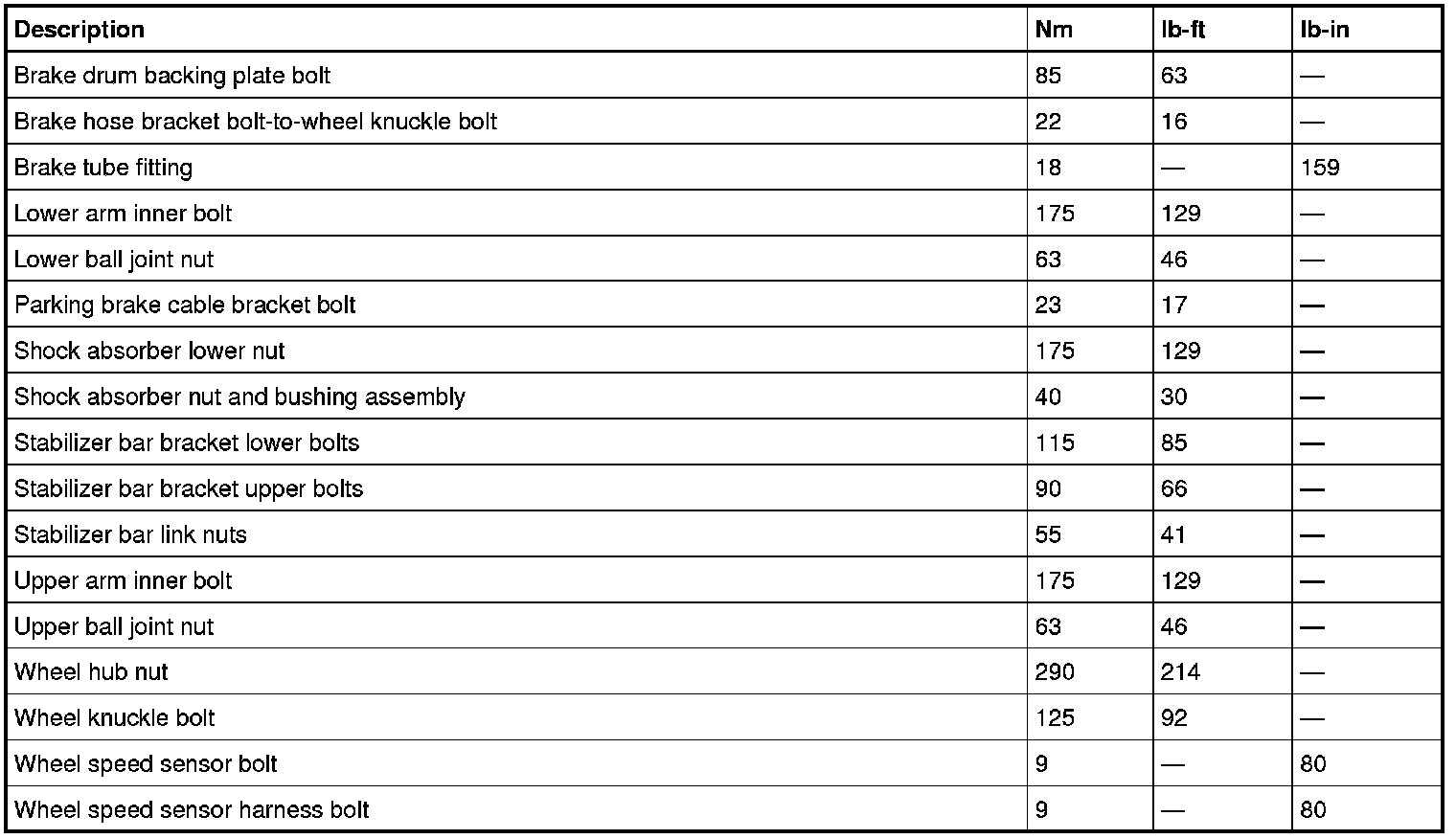 Torque Specifications