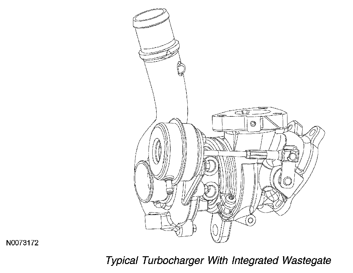 The wastegate vacuum sensor is an absolute pressure sensor that provides the PCM an analog voltage output that is proportional to the applied vacuum. The wastegate vacuum sensor is located near the turbocharger and the turbocharger wastegate regulating valve solenoid. The wastegate vacuum sensor measures the vacuum supplied by the turbocharger wastegate regulating valve solenoid to the wastegate actuator. The PCM uses the information from the wastegate vacuum sensor to determine the amount of vacuum being applied to the wastegate actuator.