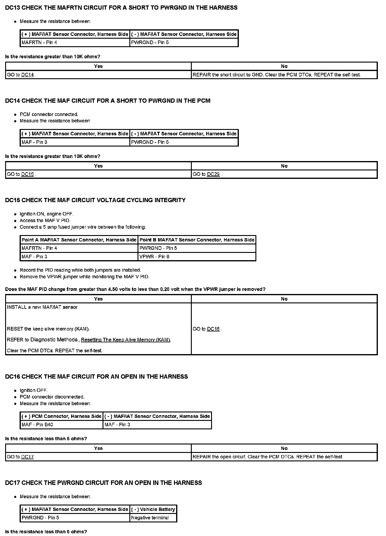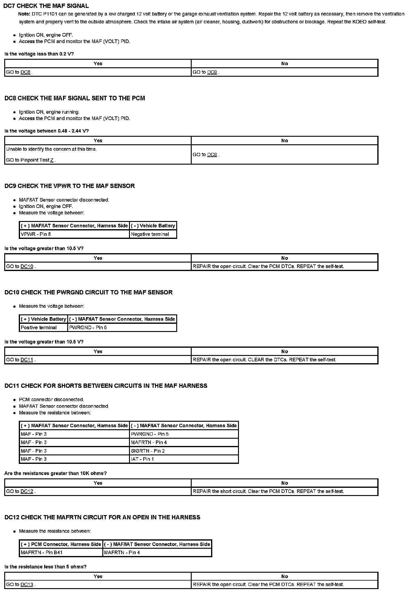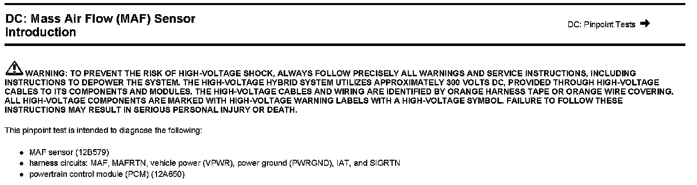 Test DC: Mass Air Flow (MAF) Sensor