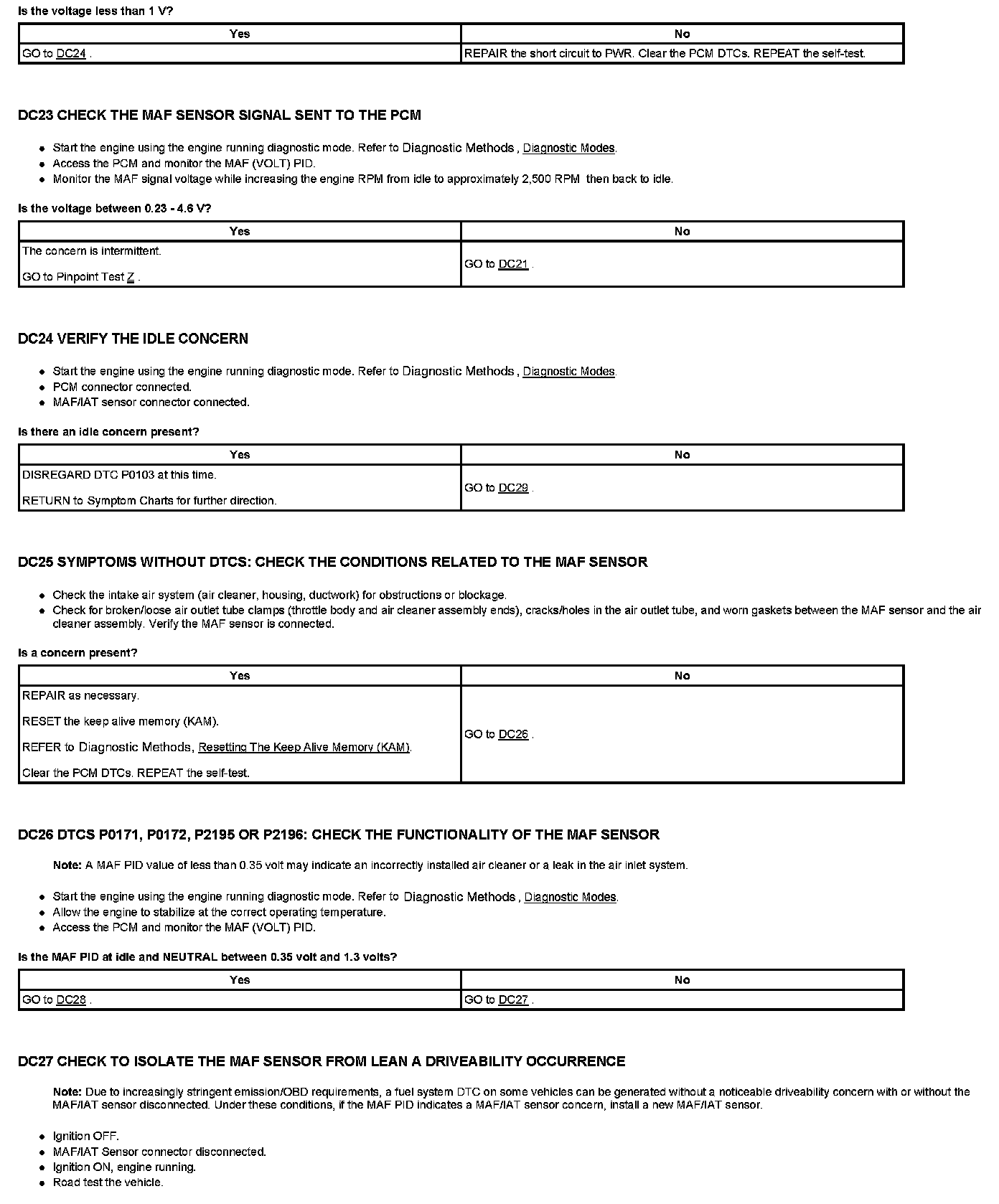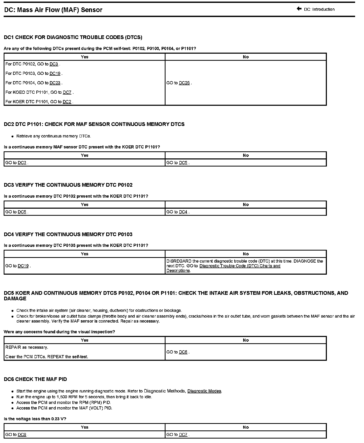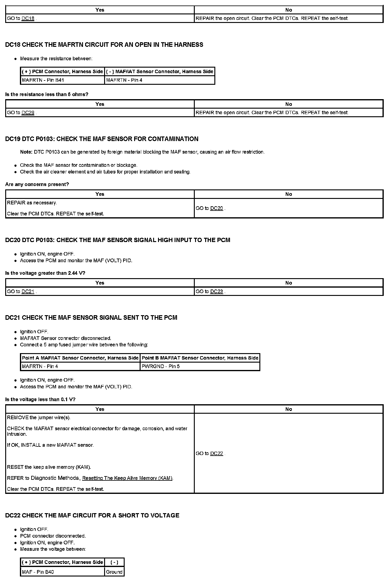 Test DC: Mass Air Flow (MAF) Sensor