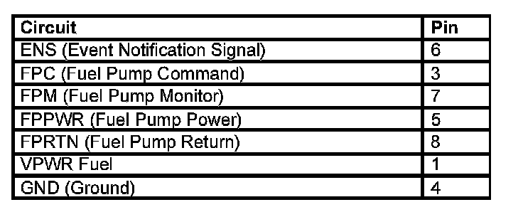 Fuel Pump Control Module Relay Connector - Refer to the Wiring Diagrams for schematic and connector information.