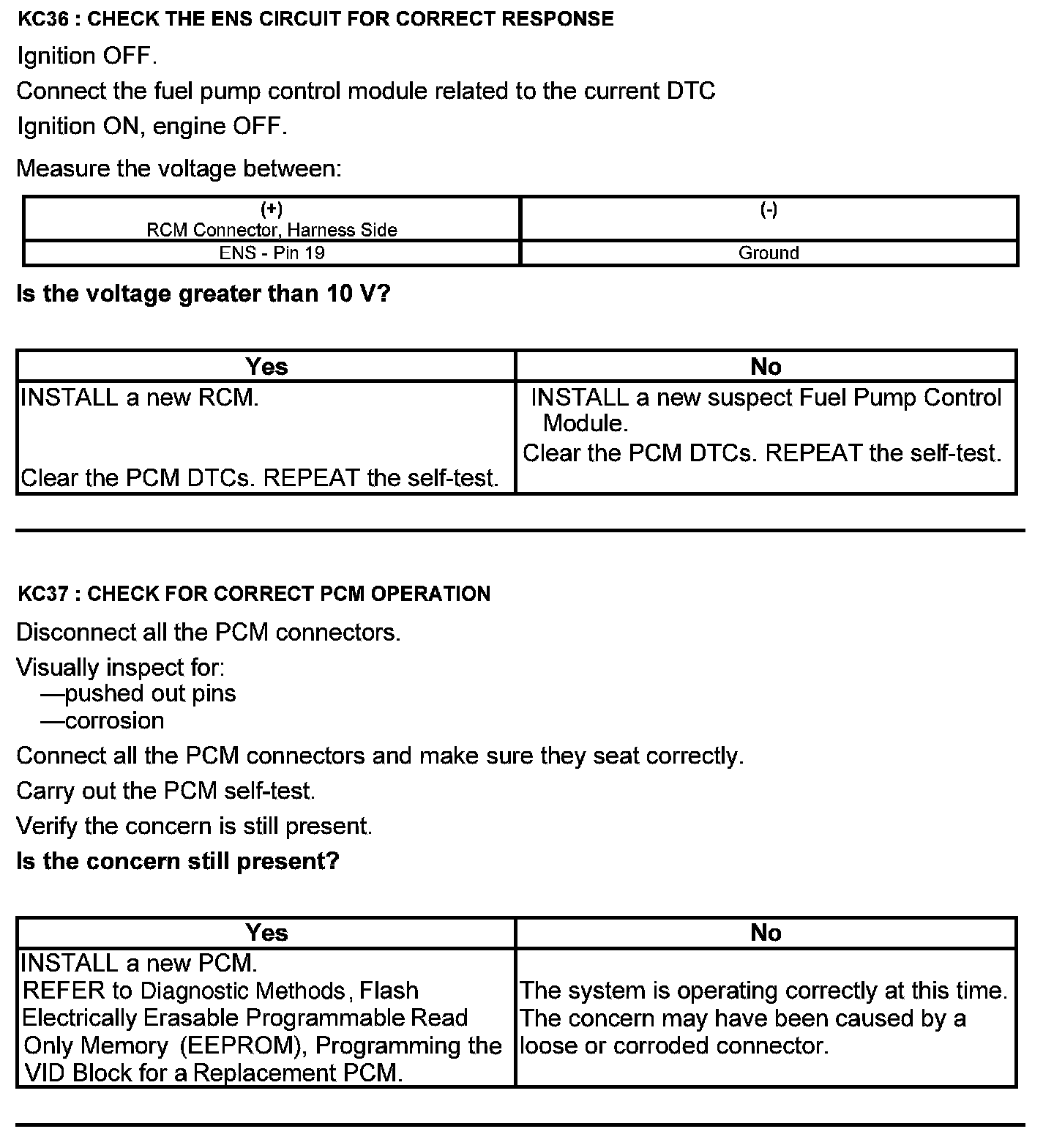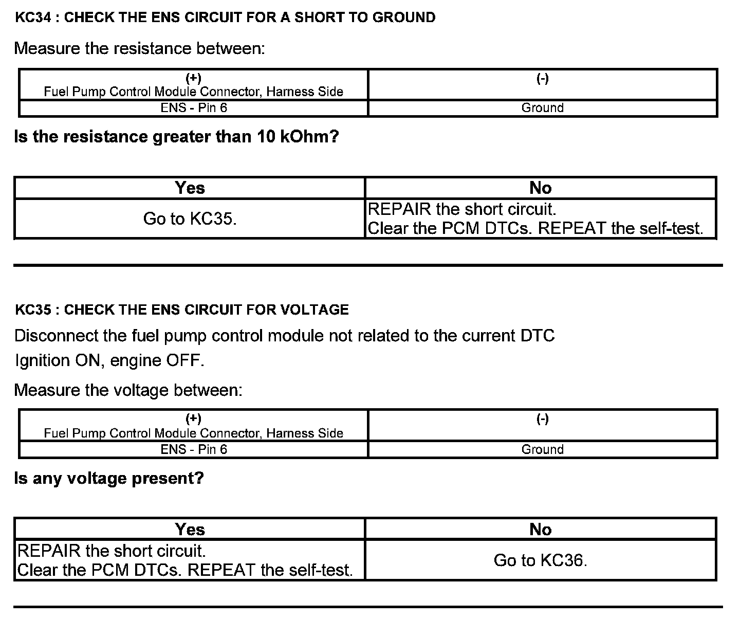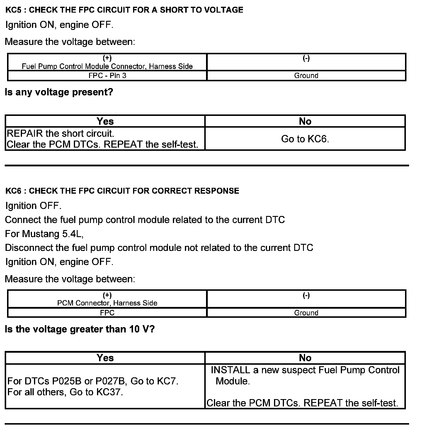 Home >> Ford >> 2012 >> Escape 4WD L4-2.5L Hybrid >> Repair and Diagnosis >> Powertrain Management >> Computers and Control Systems >> Testing and Inspection >> Pinpoint Tests >> Test KC: Fuel Pump Control Module >> All Others