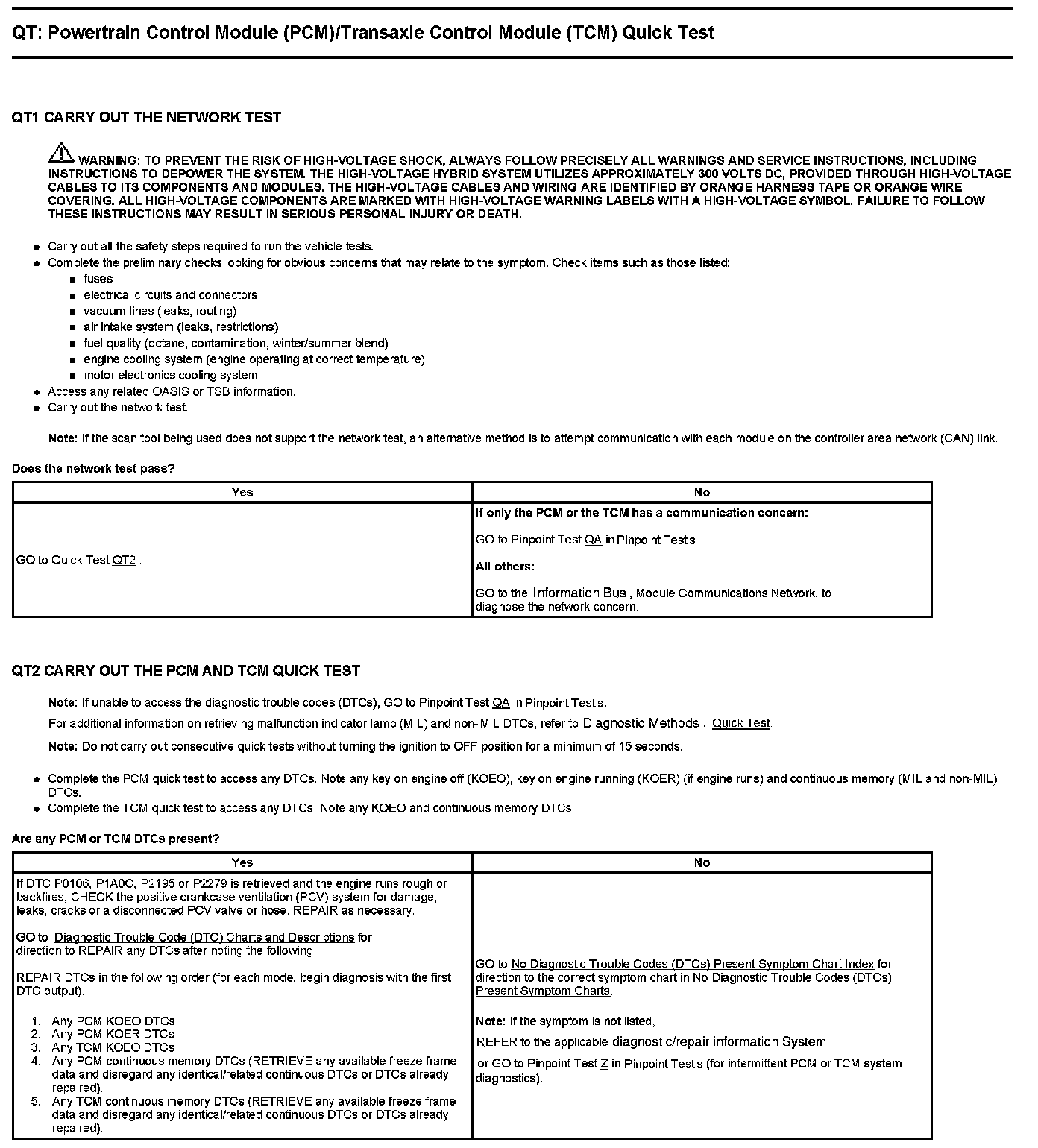 QT: Powertrain Control Module (PCM)/Transaxle Control Module (TCM) Quick Test