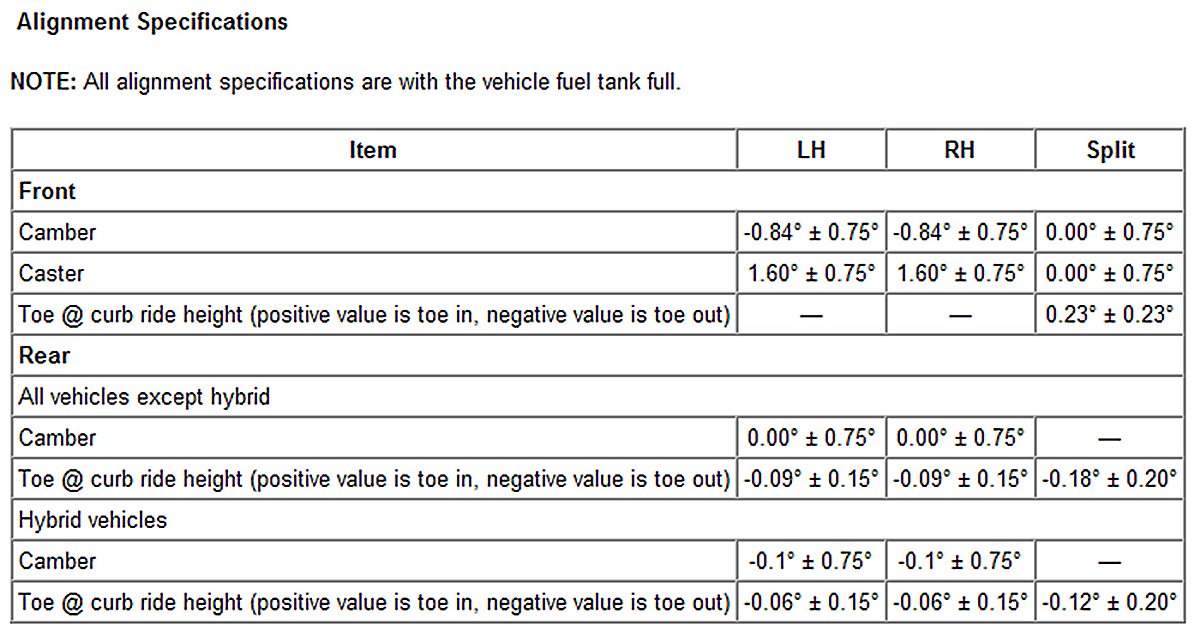 Alignment Specifications: