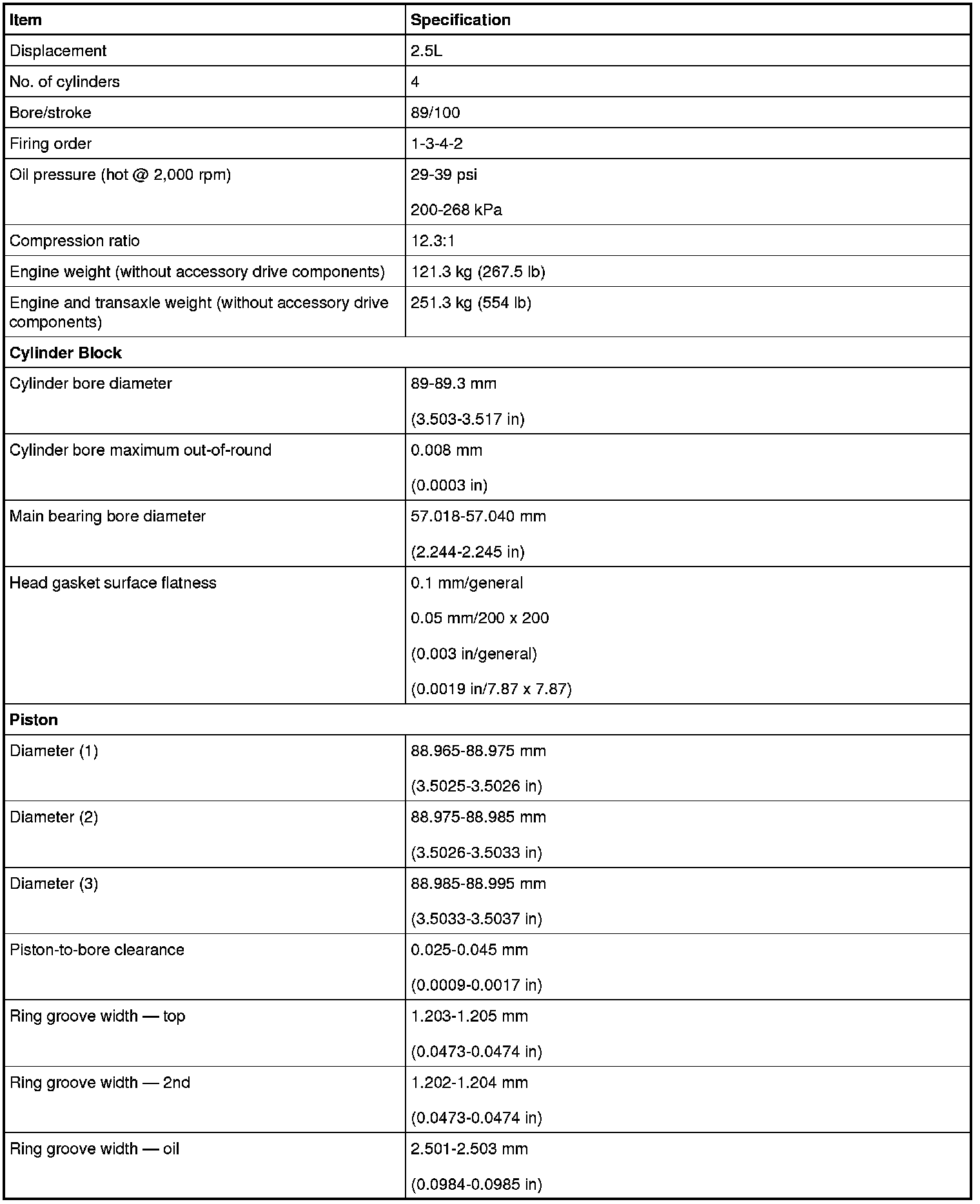 Home >> Ford >> 2012 >> Escape 4WD L4-2.5L Hybrid >> Repair and Diagnosis >> Specifications >> Mechanical Specifications >> Engine >> System Specifications >> Engine Specifications
