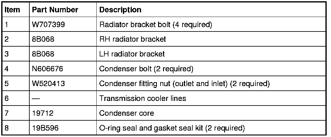 NOTE: If a condenser core leak is suspected, the condenser core must be leak tested before it is removed from the vehicle.