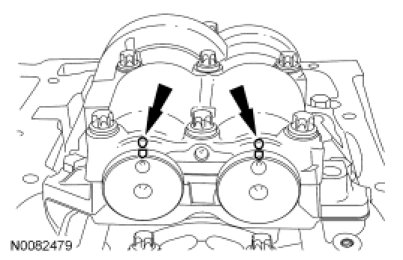 NOTICE: During engine repair procedures, cleanliness is extremely important. Any foreign material, including any material created while cleaning gasket surfaces, that enters the oil passages, coolant passages or the oil pan can cause engine failure.