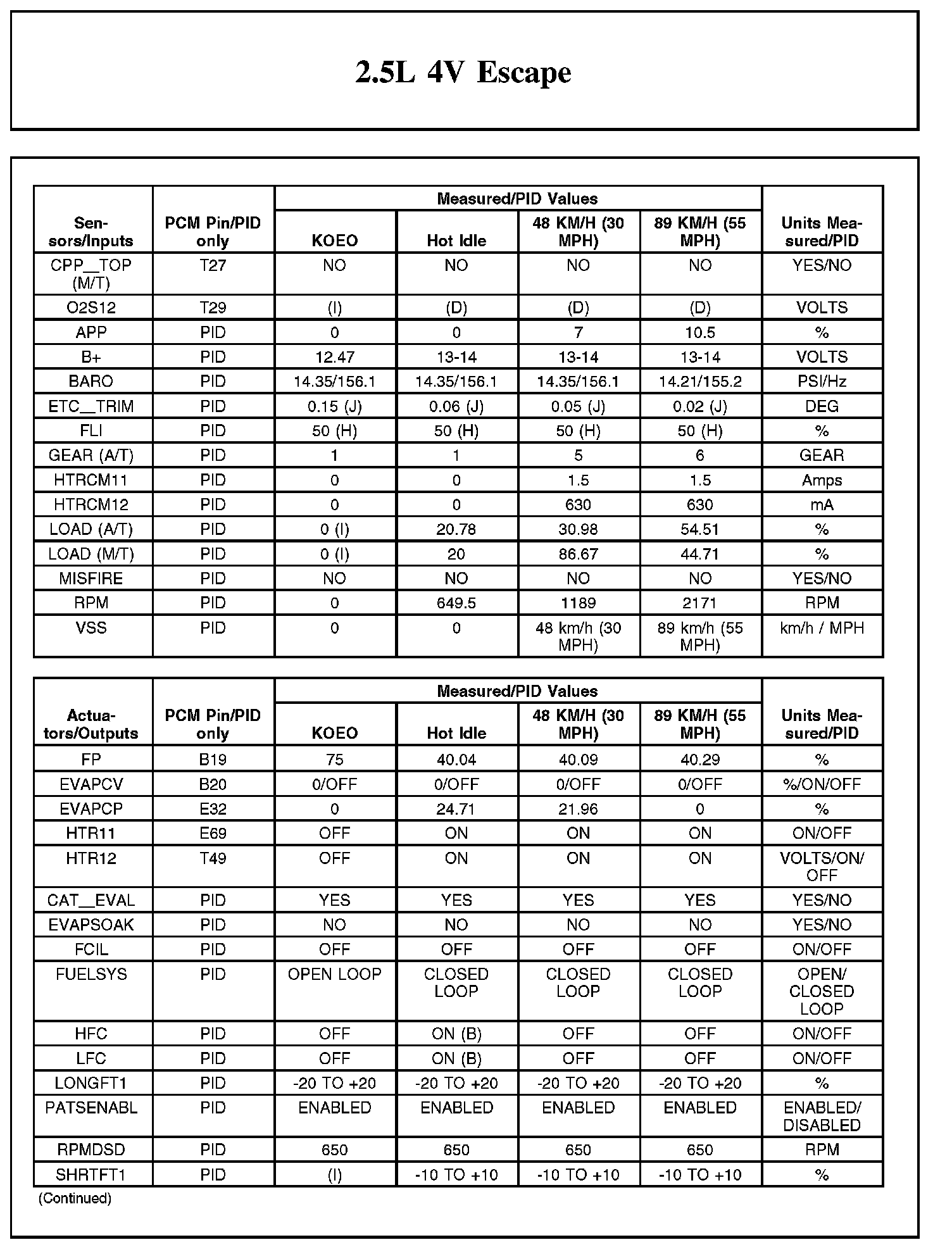 Home >> Ford >> 2012 >> Escape 4WD L4-2.5L >> Repair and Diagnosis >> Powertrain Management >> Computers and Control Systems >> Testing and Inspection >> Scan Tool Testing and Procedures >> Typical Diagnostic Reference Values